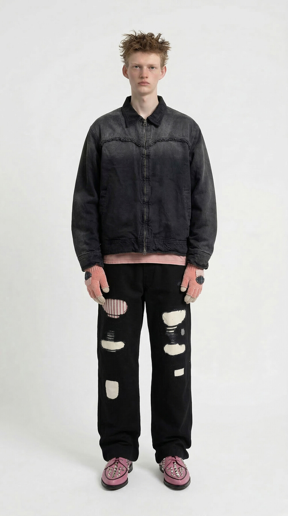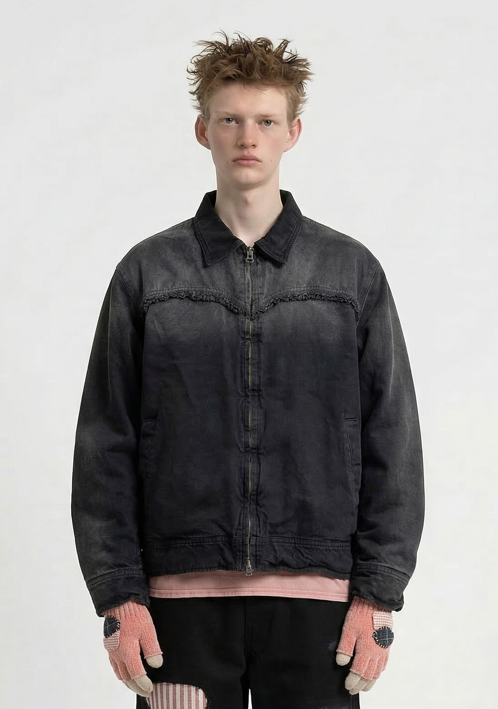 Hand-dyed Lace Trucker Jacket [Faded Black]