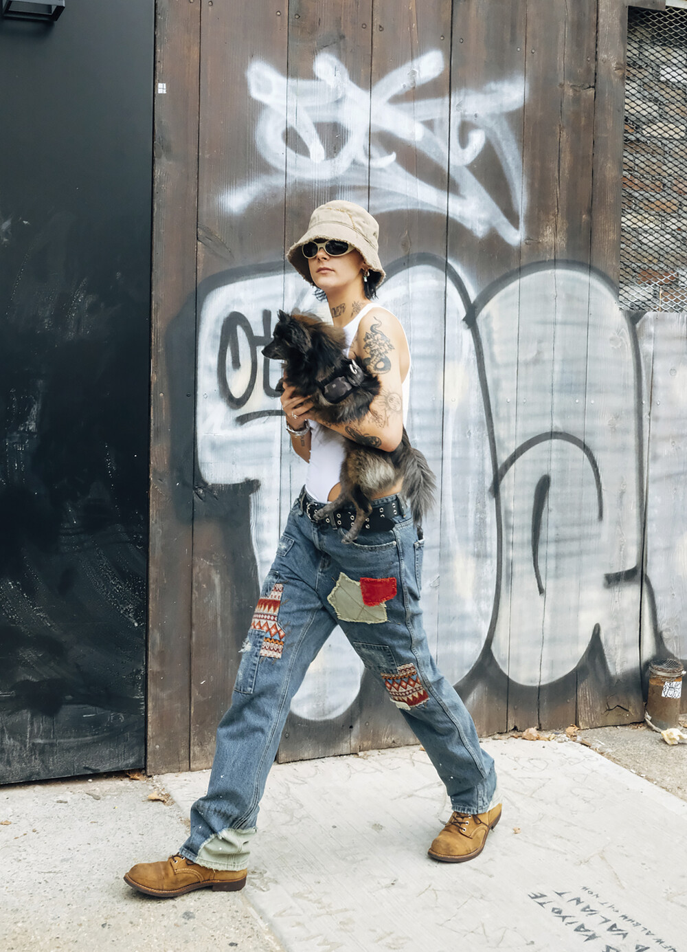 -전,후면 곳곳에 패치워크 디테일과 핸드스티치.