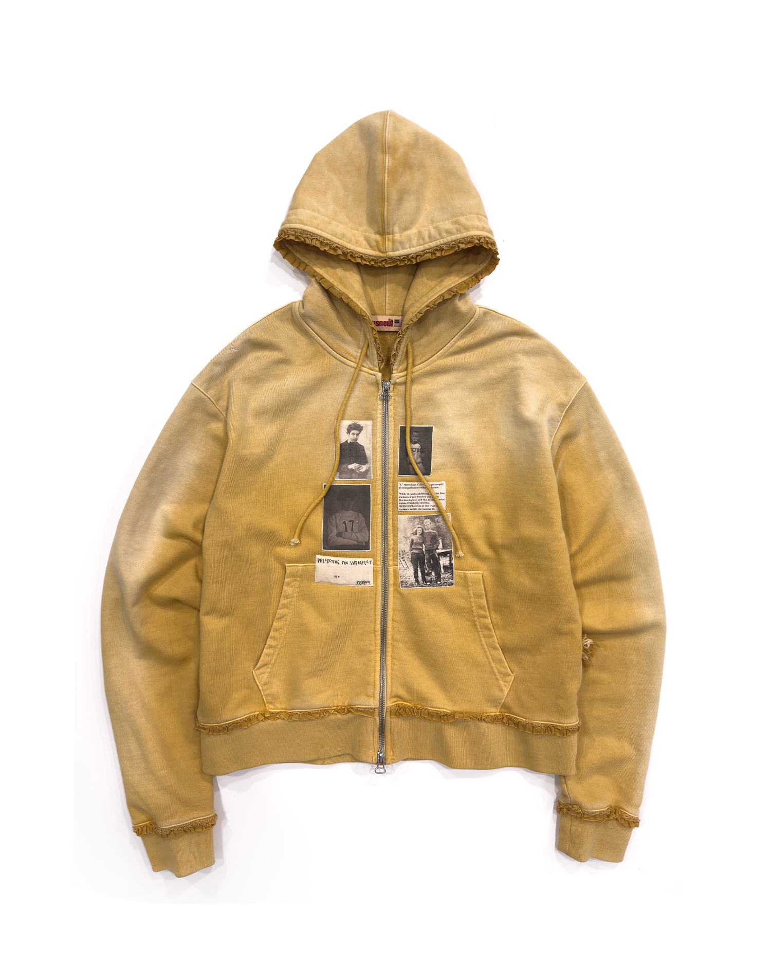 Hand-dyed Lace Hoodie zip-up [Yellow]