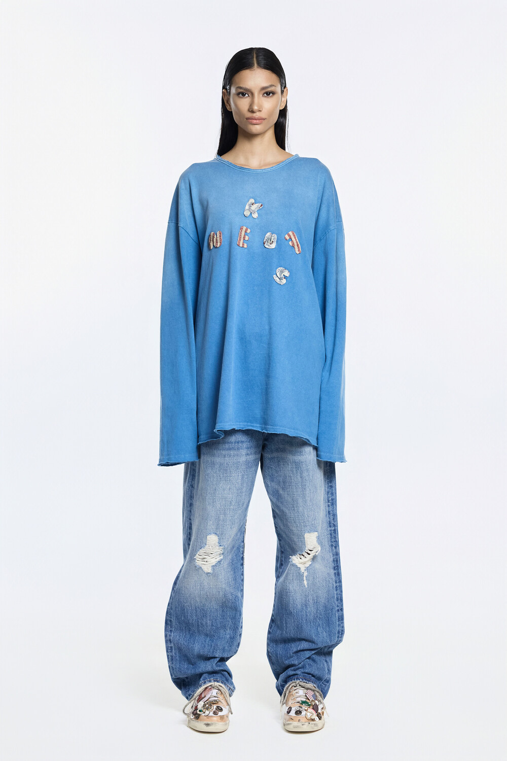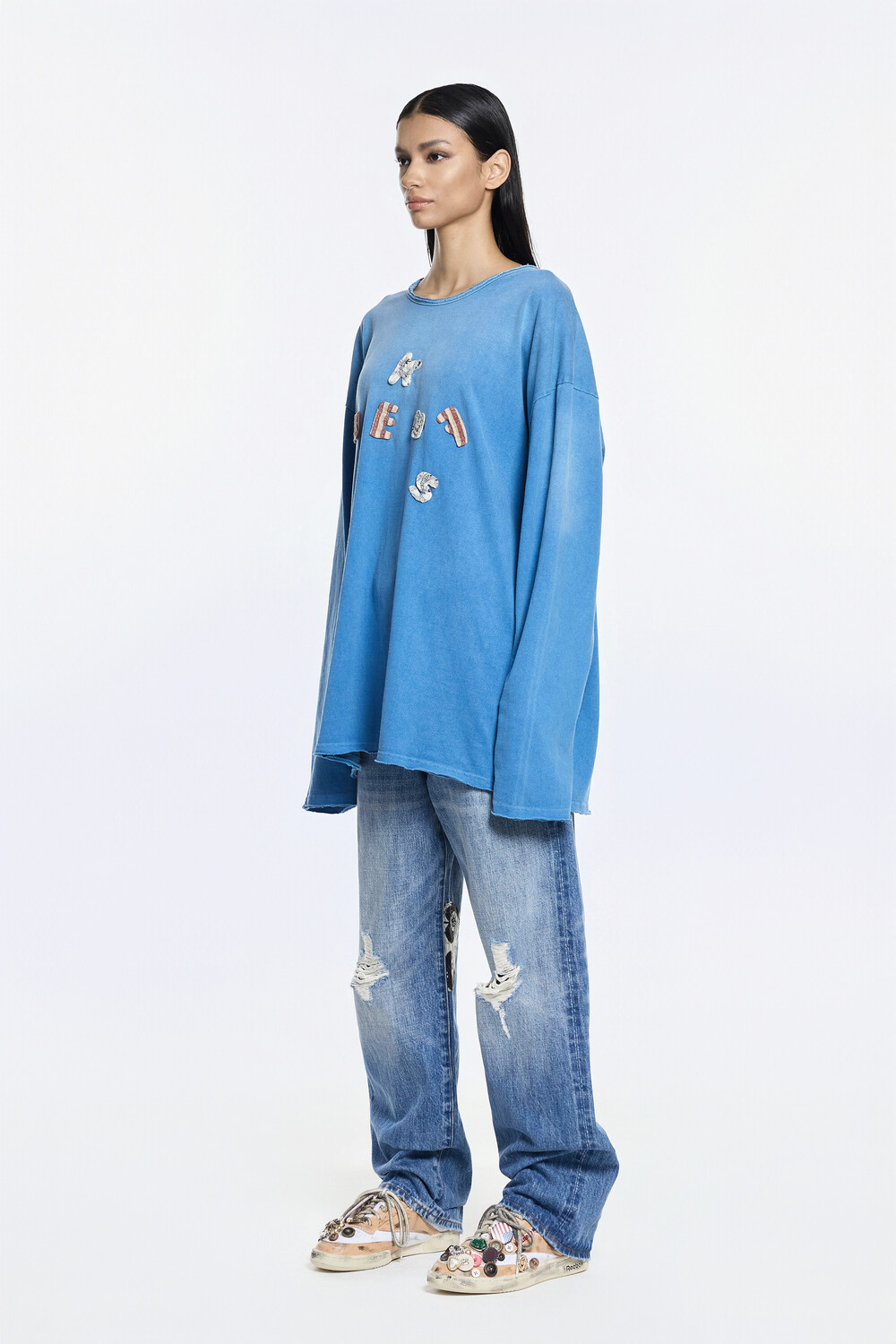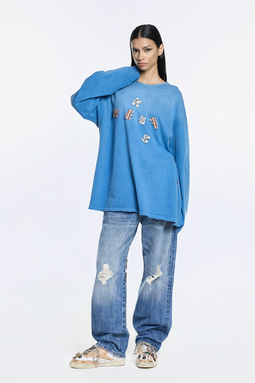 -전면 양쪽 무릎 디스트레스트로 빈티지한 연출