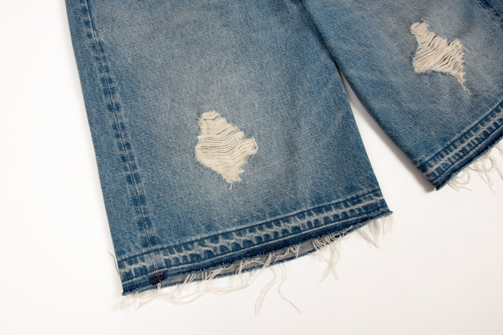 -워싱 후 밑단을 뜯어내어 올이 자연스럽게 풀어짐