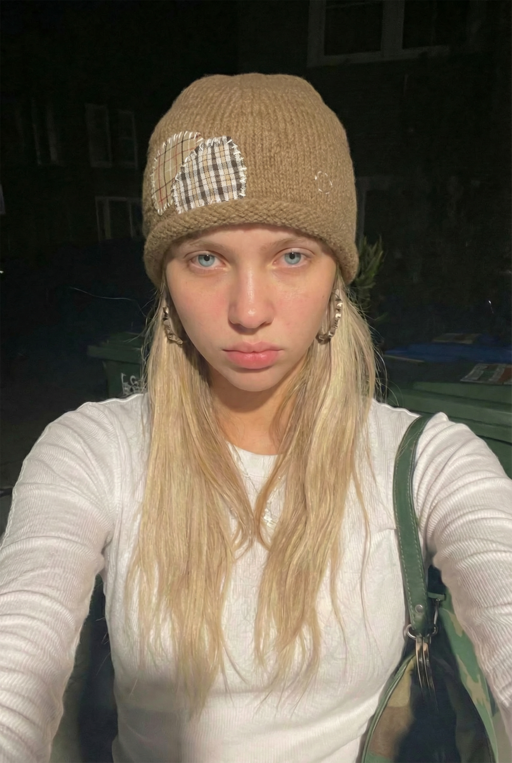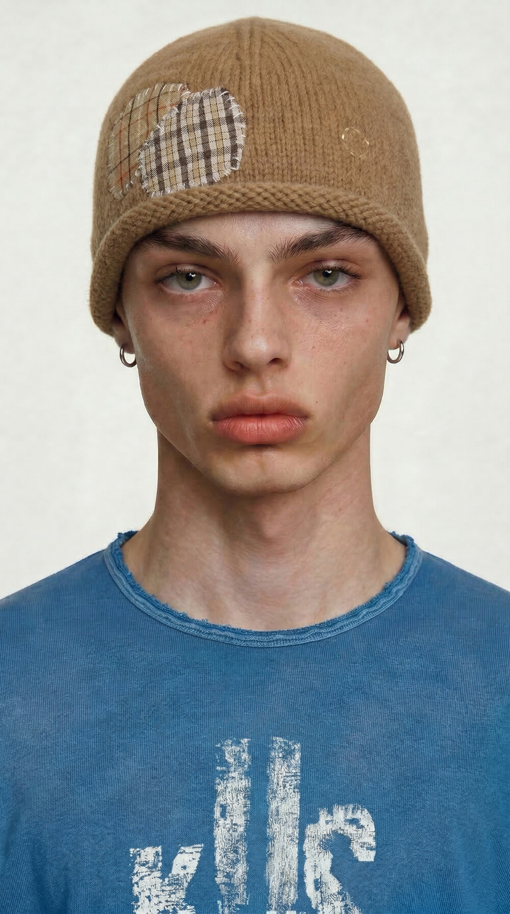 Patchwork Knit Beanie [Beige]