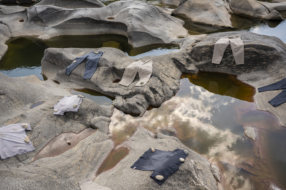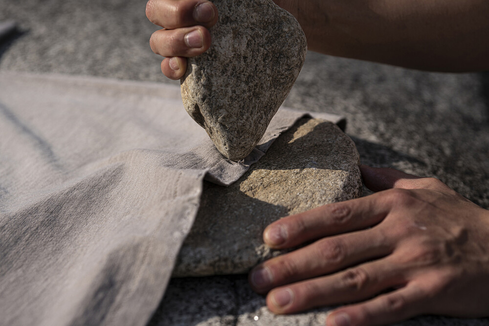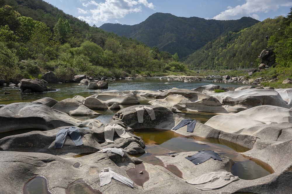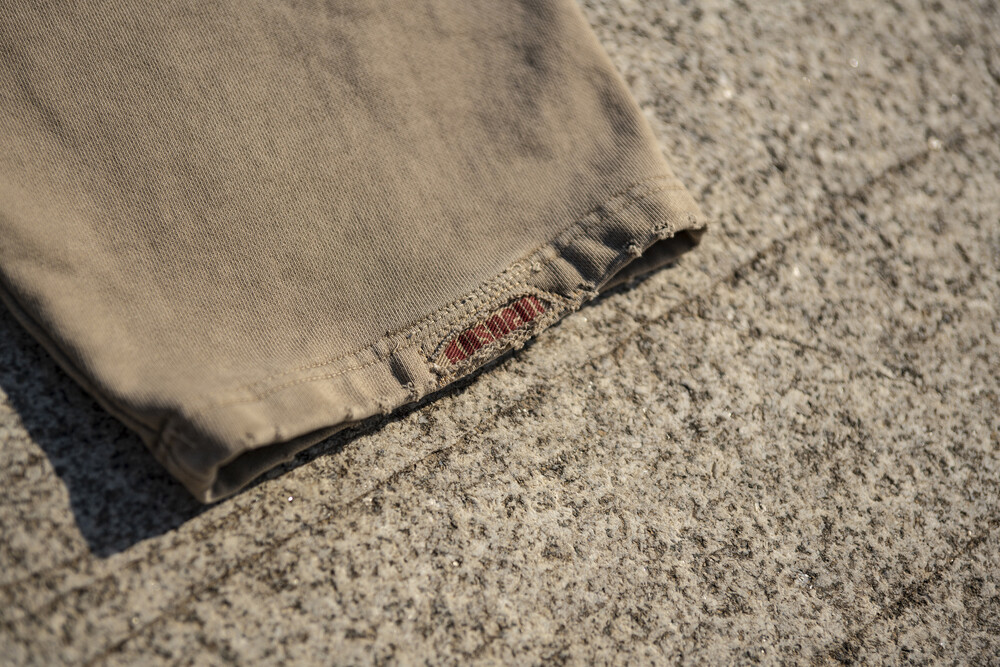 -밑단 가장자리에 ‘Stone Effect Distressed’ 가공으로 빈티지한 무드의 자연스러운 디스 마감.