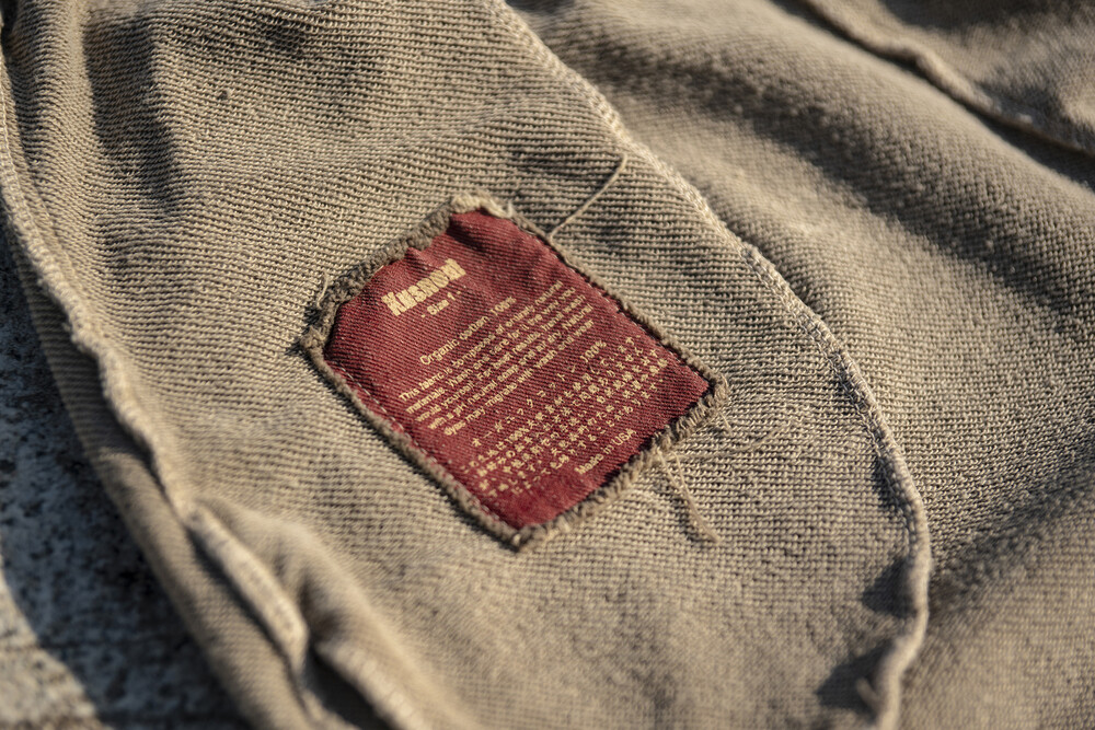 -후면 상단에 패치와 밑단의 디스 구멍 안쪽으로 보이는 ‘Kusneuf’ 로고.