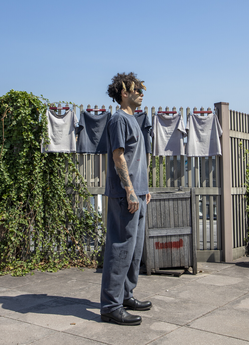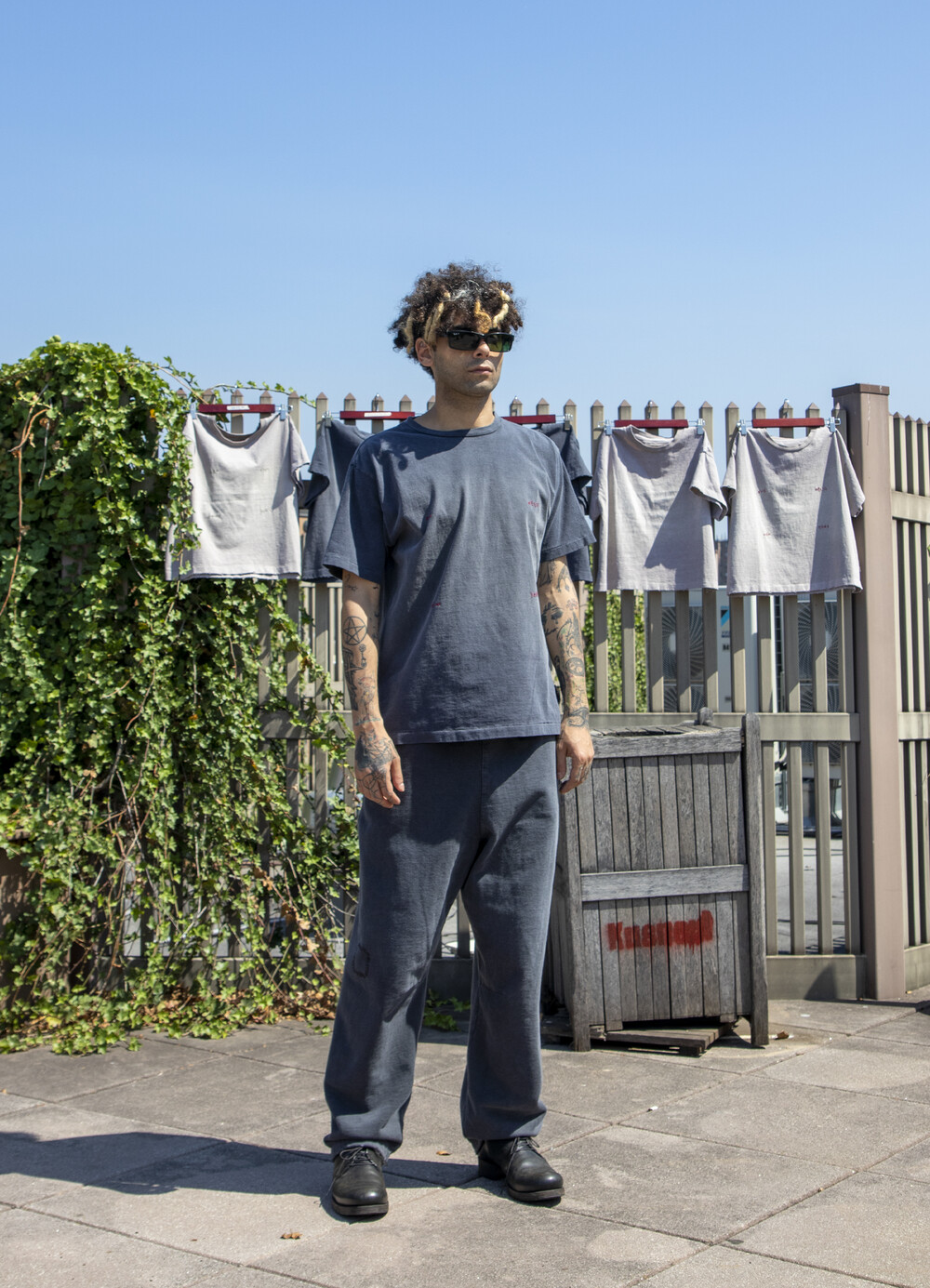-전면 상단에 수작업 된 디스 디테일과 'Square' 모양의 손자수. -후면 상단에 패치와 밑단의 디스 구멍 안쪽으로 보이는 ‘Kusneuf’ 로고. -천연다잉으로 랜덤한 자리에 얼룩이 있으며, 전제적으로 다크그레이에 가까운 어두운 컬러. -긴 밑위 길이, 무릎과 엉덩이의 다트로 루즈하지만 둥근 모양의 핏과 편안한 활동성. -밑단 가장자리에 ‘Stone Effect Distressed’ 가공으로 빈티지한 무드의 자연스러운 디스 마감. -‘A month of nature exposure’ 가공으로 개체차이가 있을 수 있음. (상세페이지 참조)