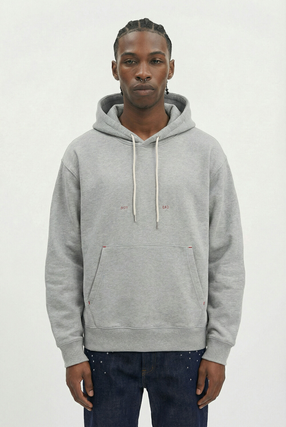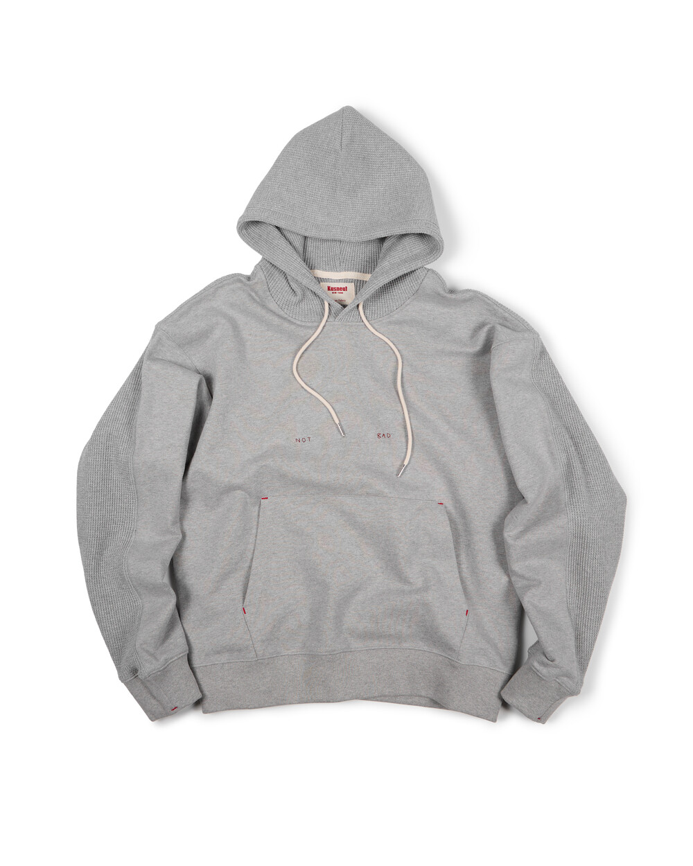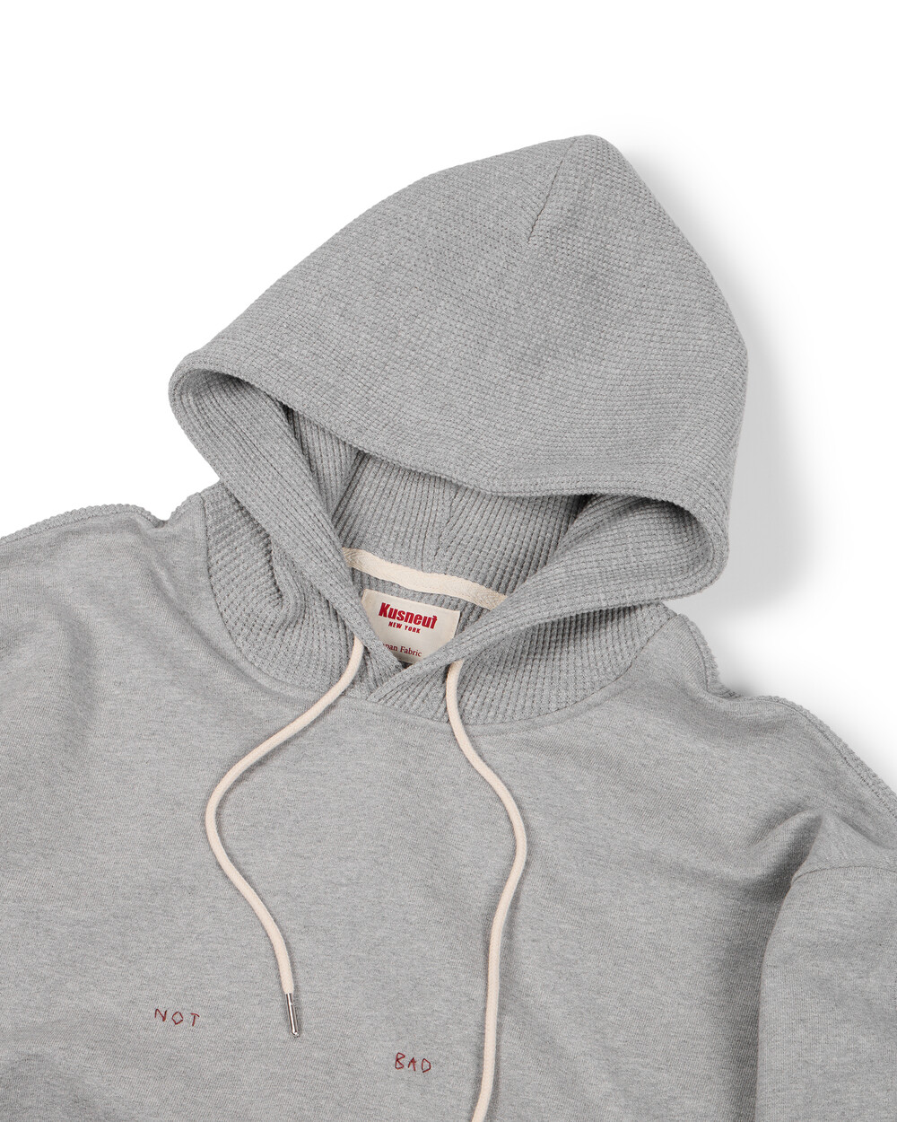 'NOT BAD' Hand Stitch Half Waffle Hoodie [Grey]