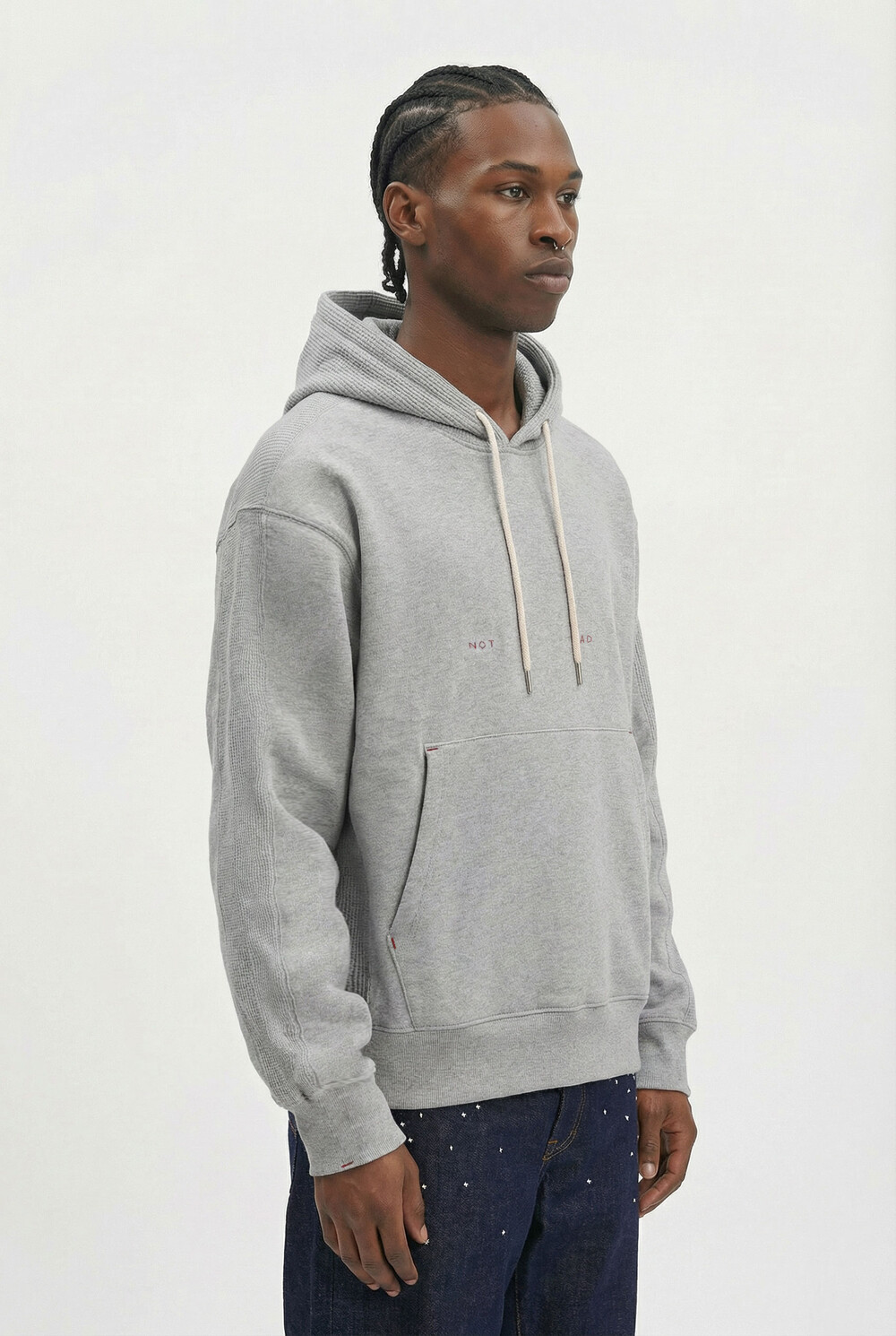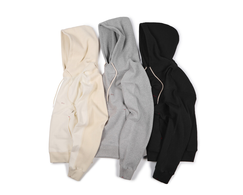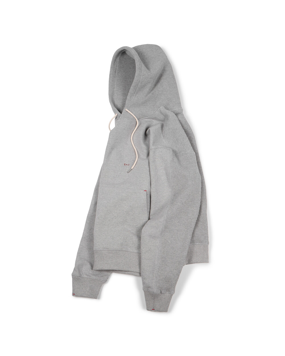 'NOT BAD' Hand Stitch Half Waffle Hoodie [Grey]