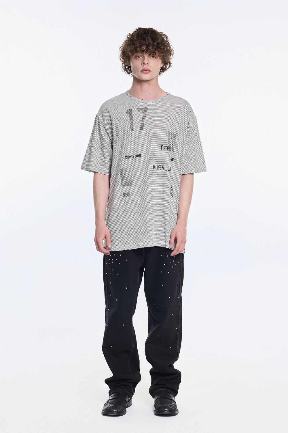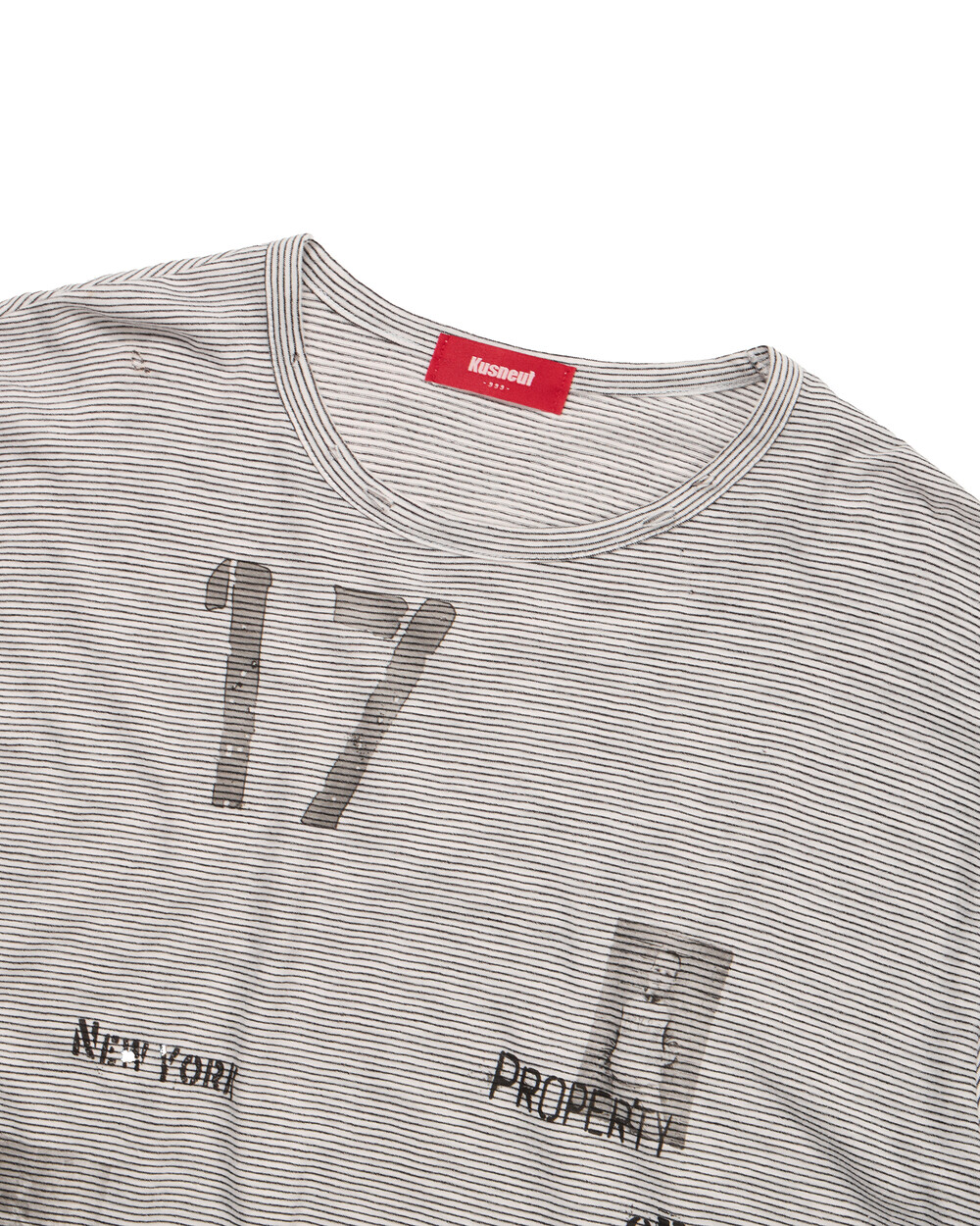 - 전면부 "STATE: 17" 빈티지한 무드의 프린팅. - 30수 얇은 소재로 탁월한 통풍 효과. - 밑단 양쪽 트임으로 편안한 착용감. - 레이어드 연출가능. - 가장자리 데미지.