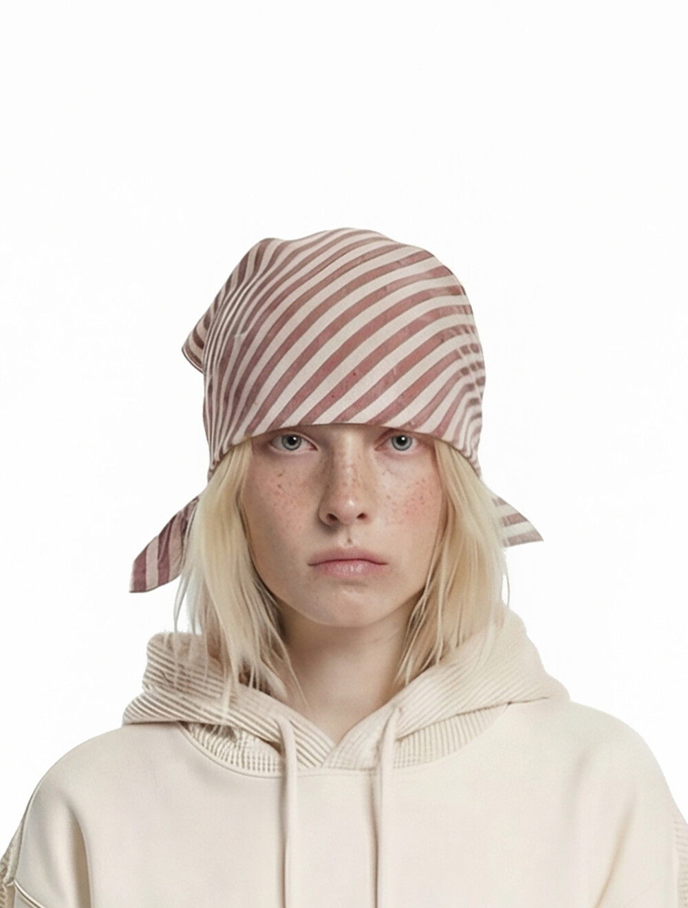 Kusneuf LOGO Linen Stripe Wrap / Scarf [Red]