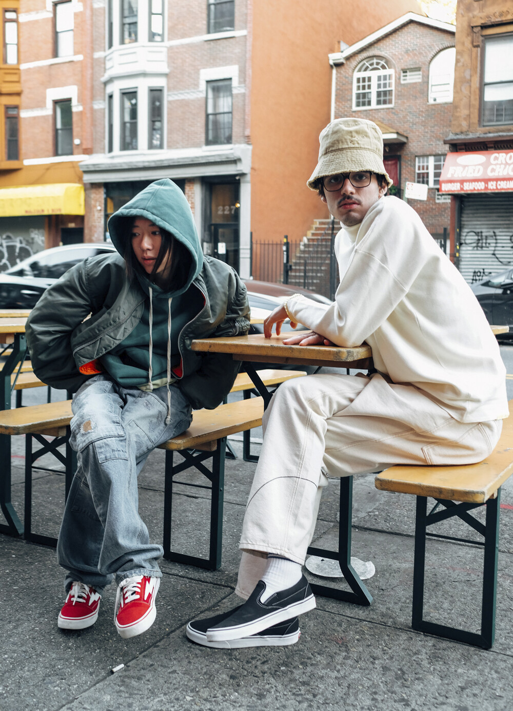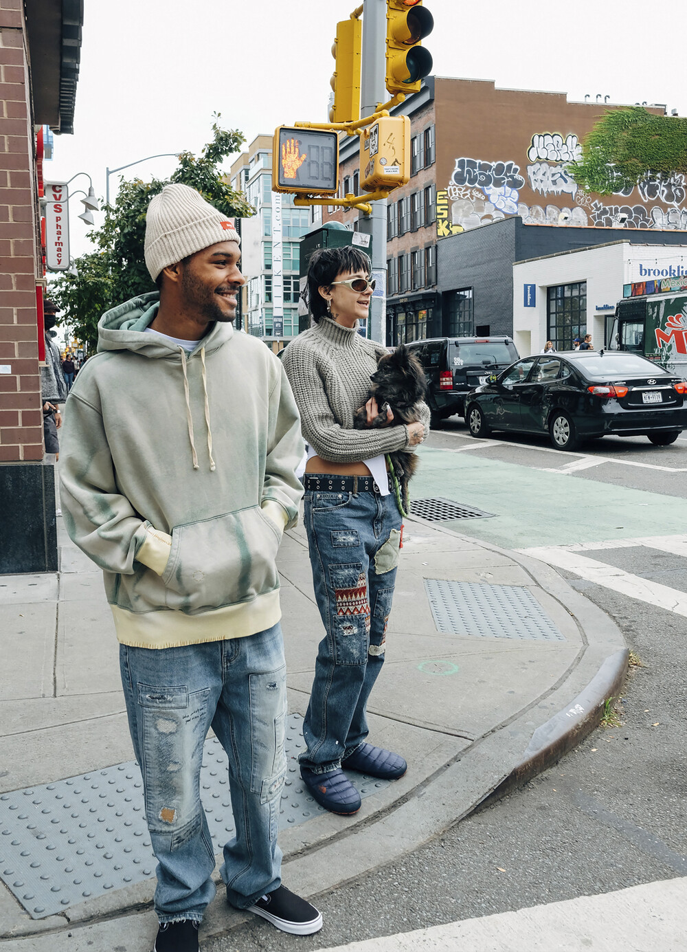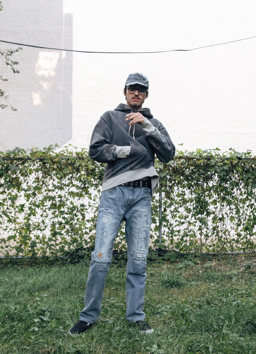 -무릎과 밑단 뒷면에 코듀로이를 이용한 리워크 디테일이 있습니다.