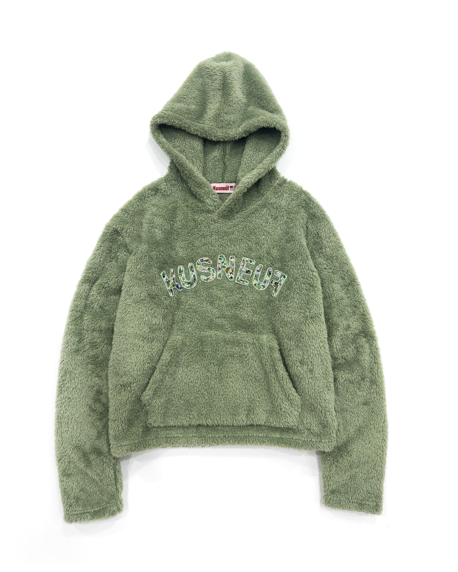 'KUSNEUF' Beads Logo Fleece Hoodie [Green]