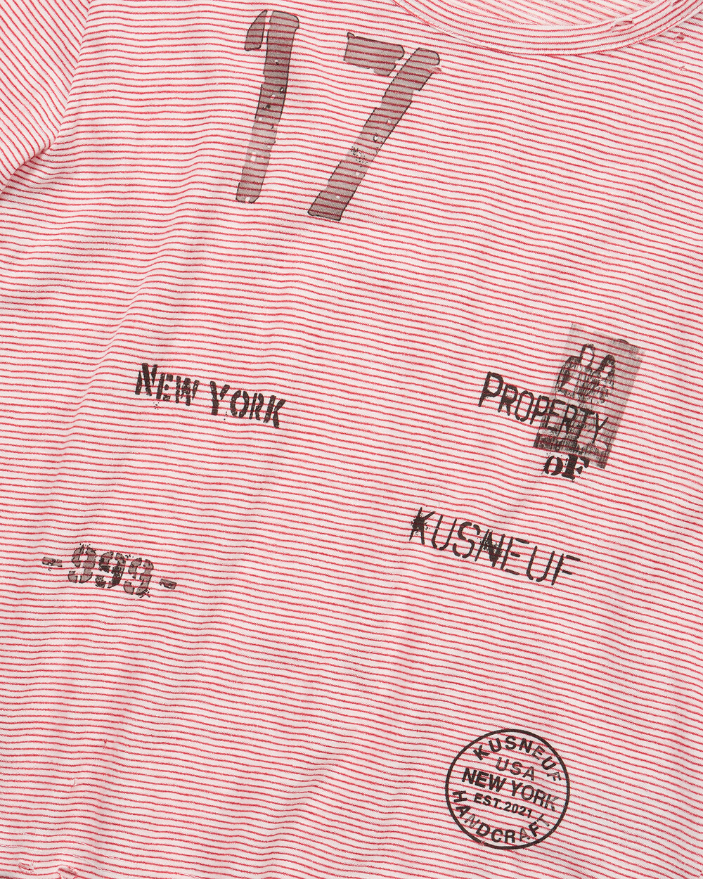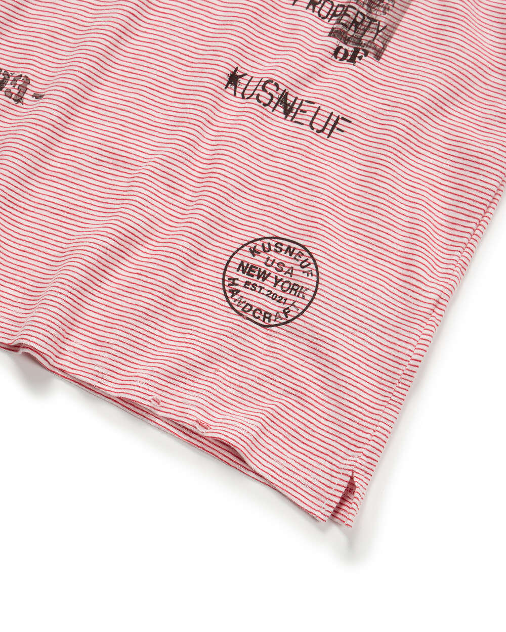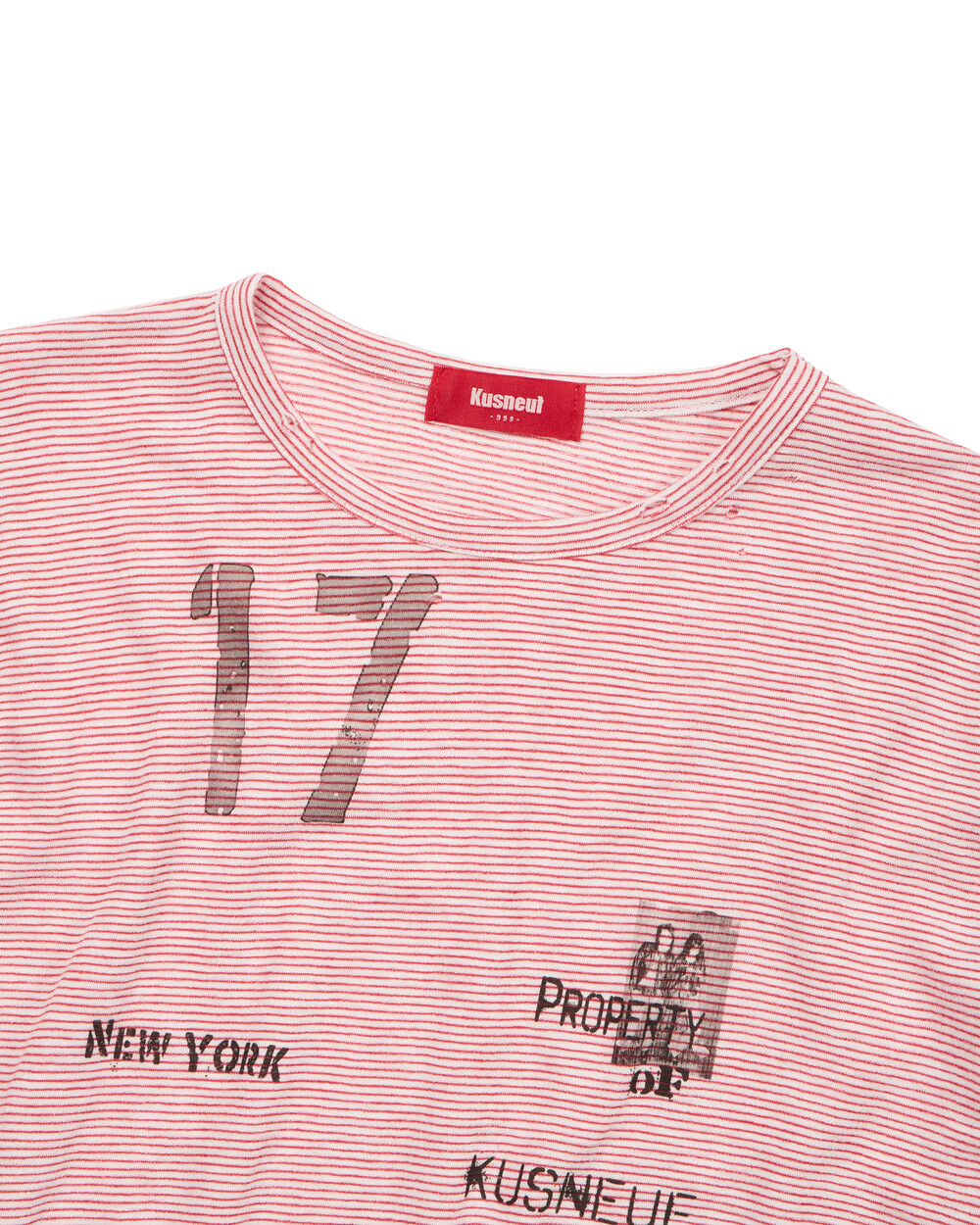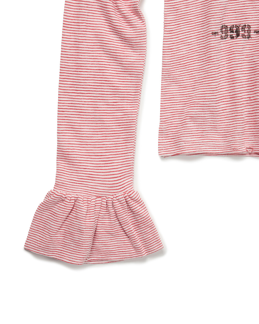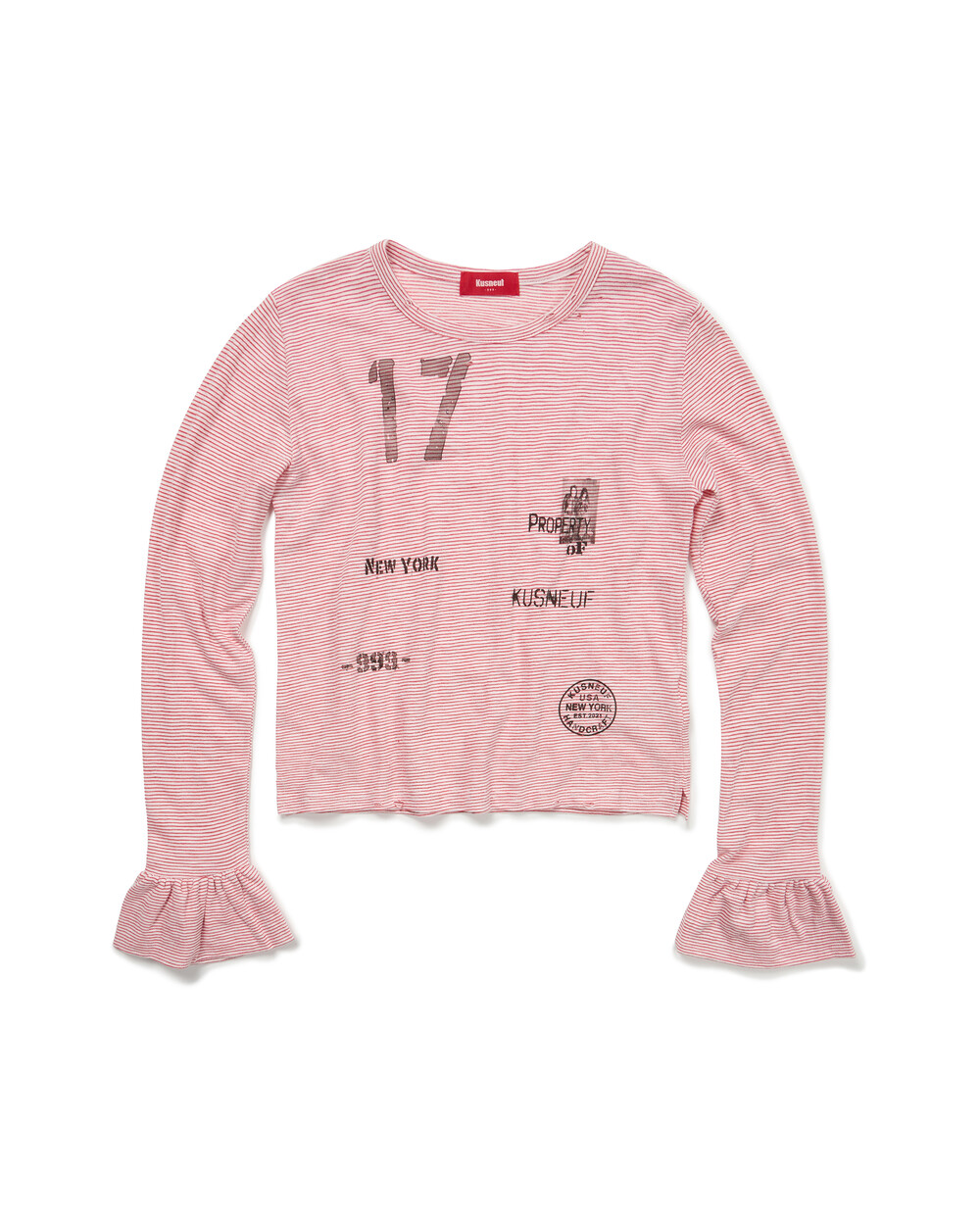 ’STATE:17‘ Printed flare-sleeve stripe shirt [red]