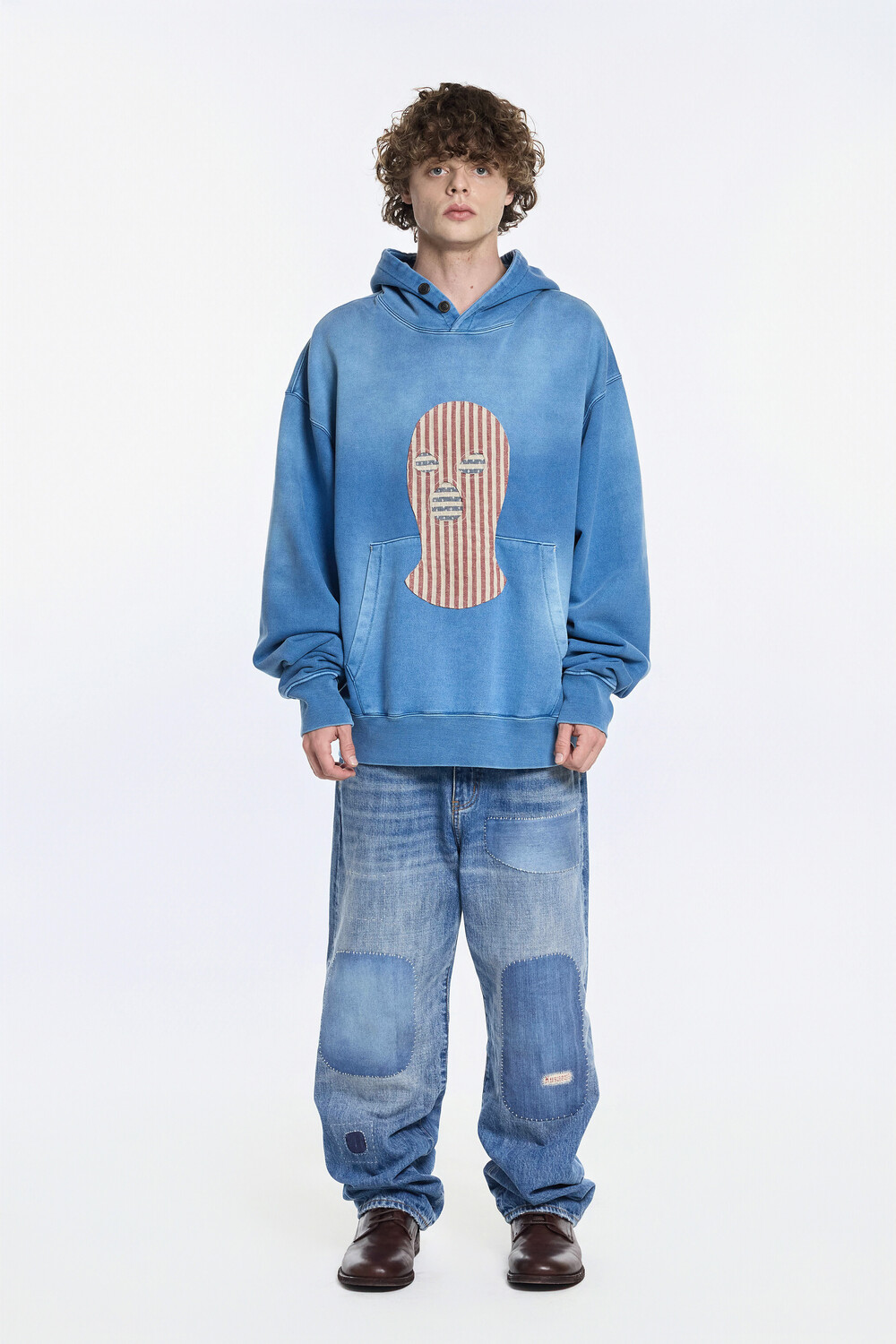 USA Flag Balaclava Patchwork Hoodie [Indigo dye]