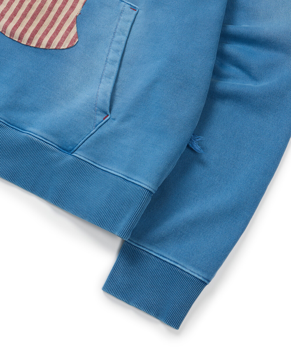 - 전면 포켓 입구 수소봉제 디테일.