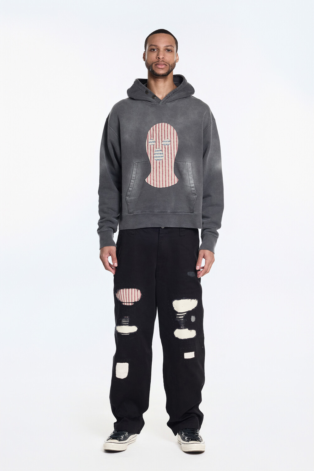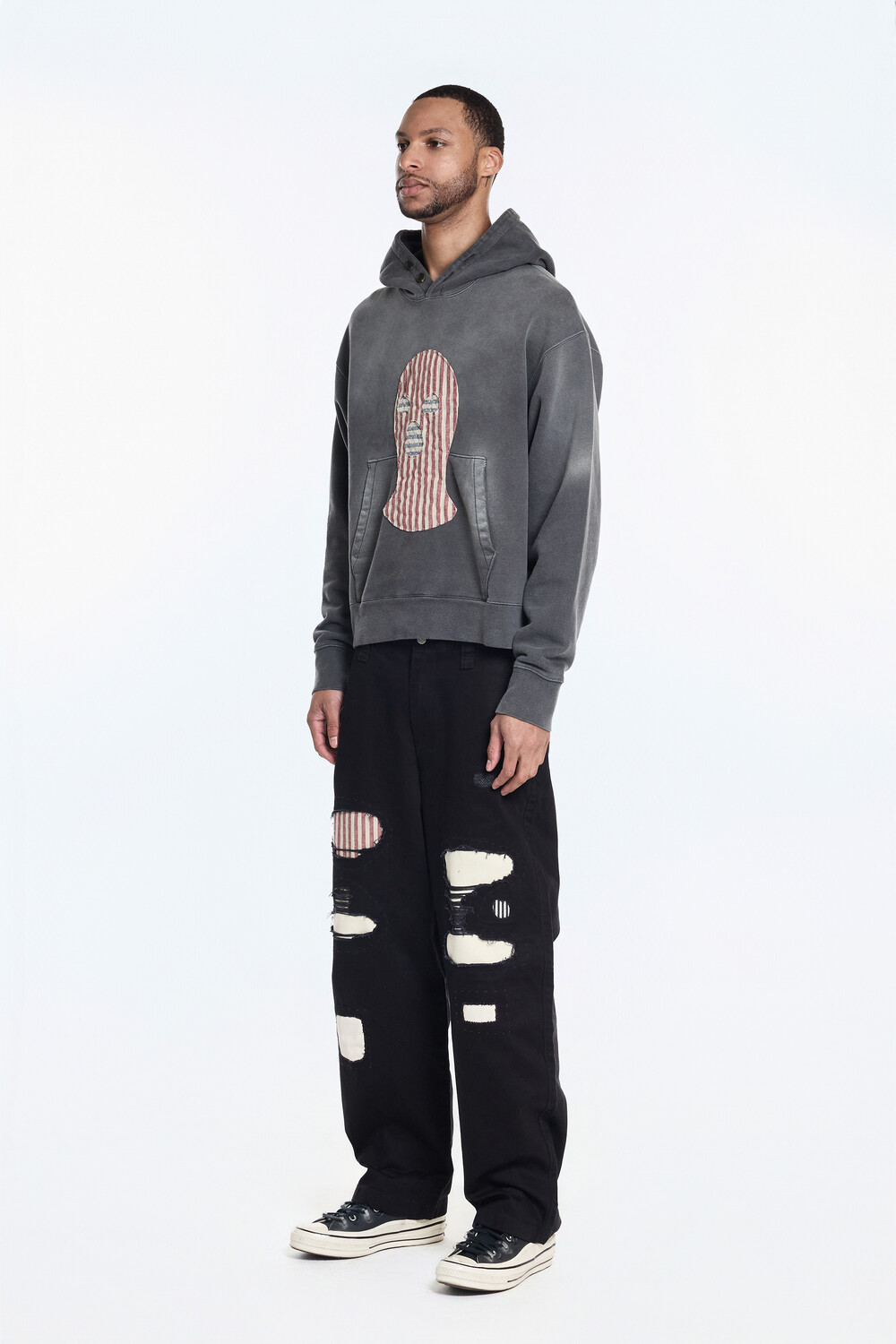 USA Flag Balaclava Patchwork Hoodie [Charcoal dye]