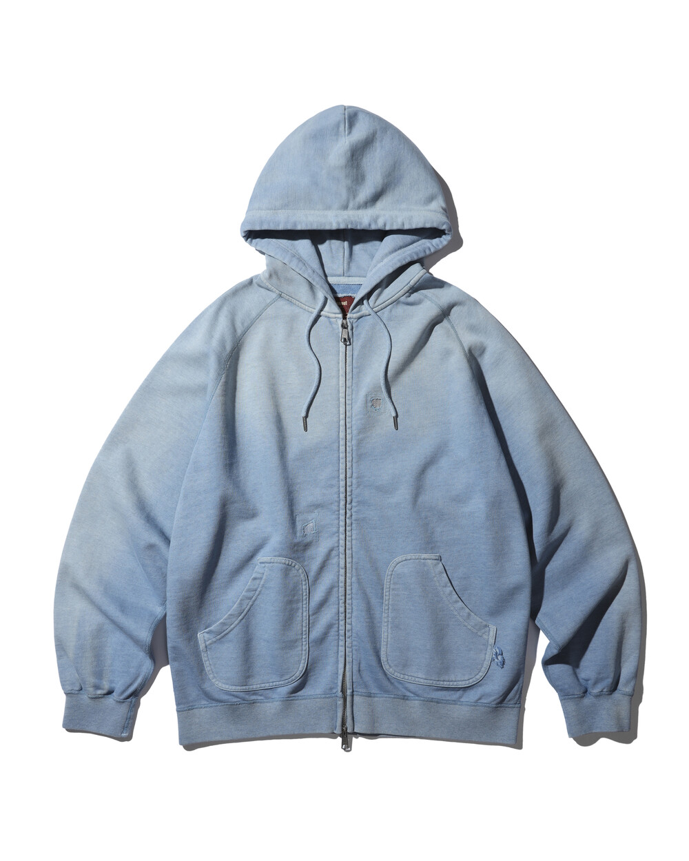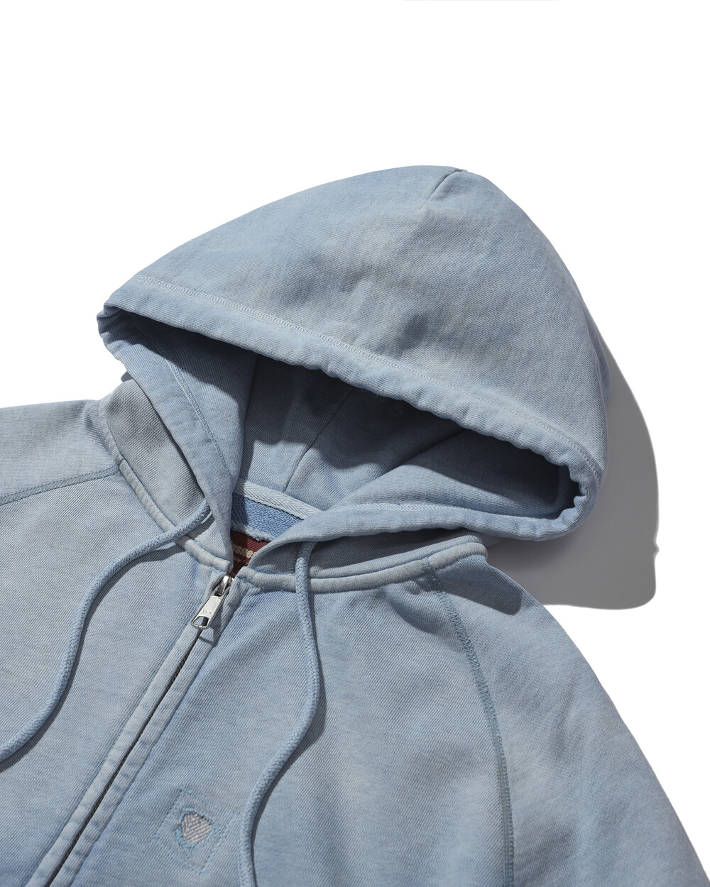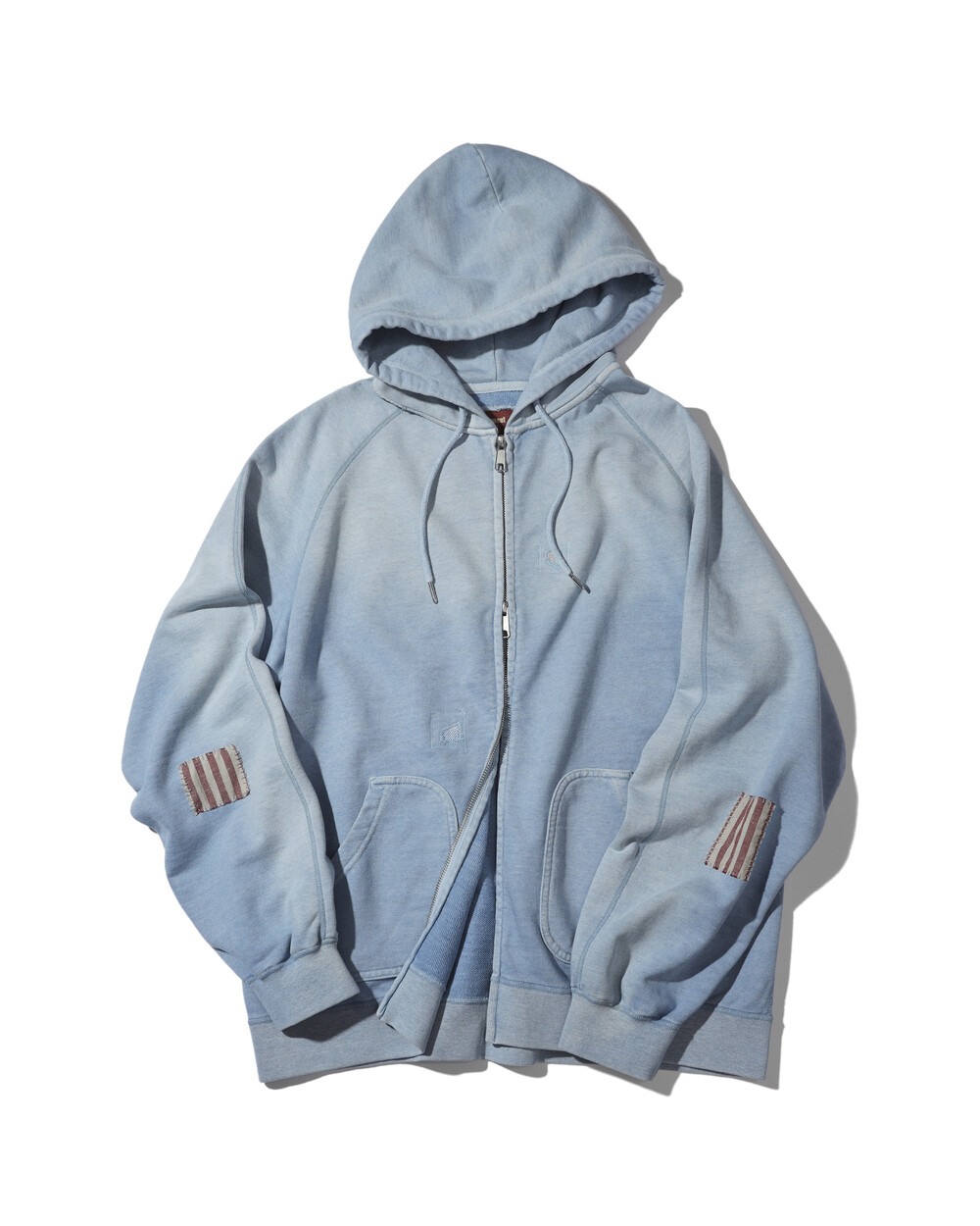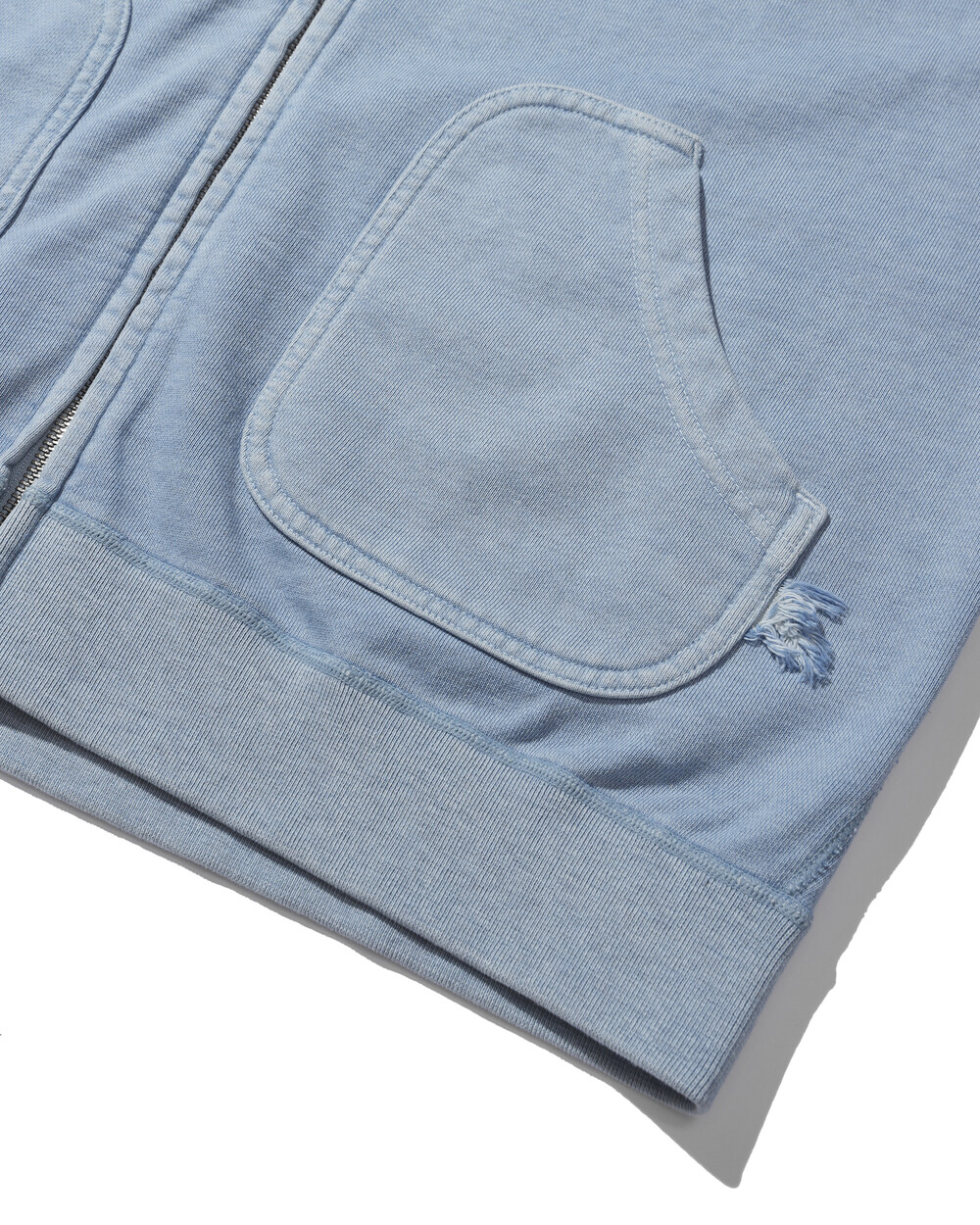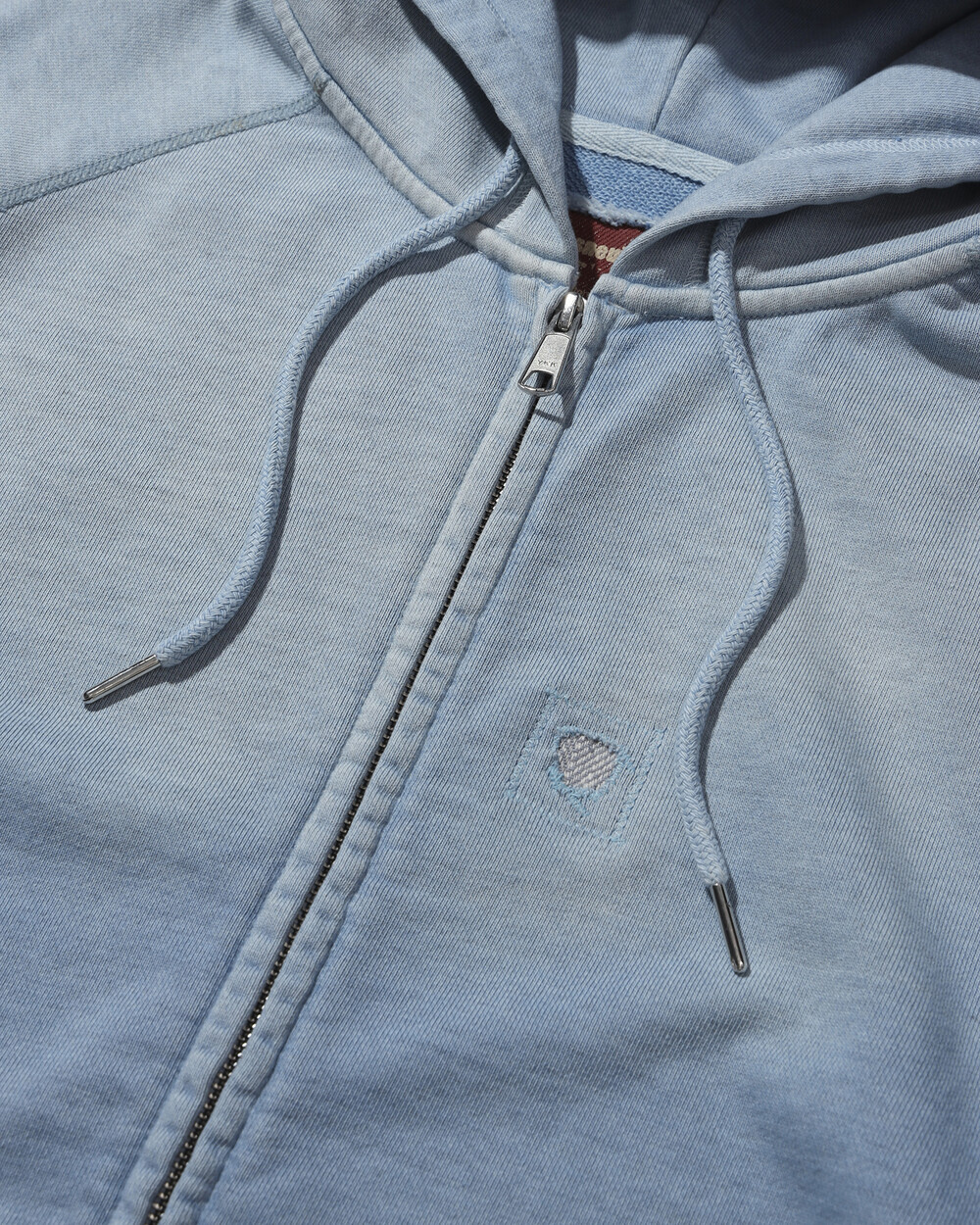 - 자연 건조와 Sun-bleach 가공을 이용한 자연스러운 퇴색 효과.