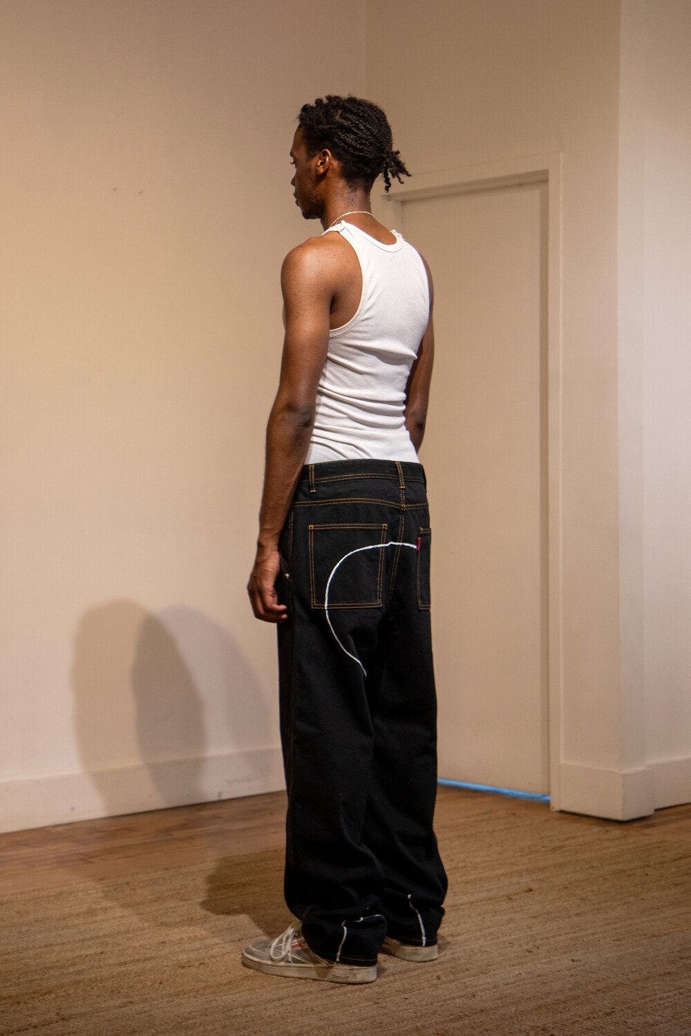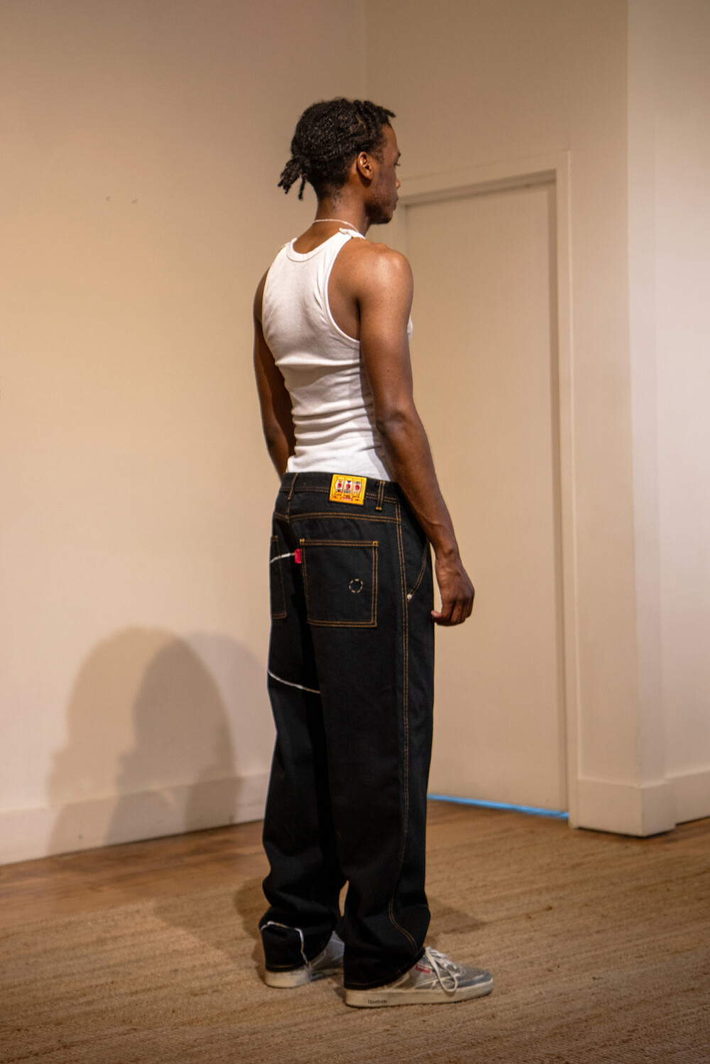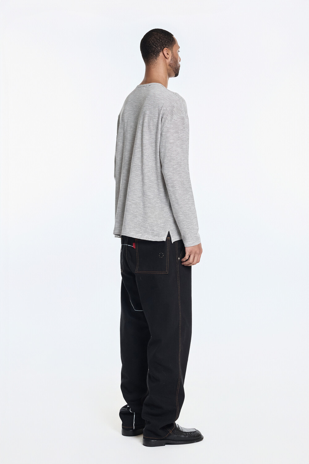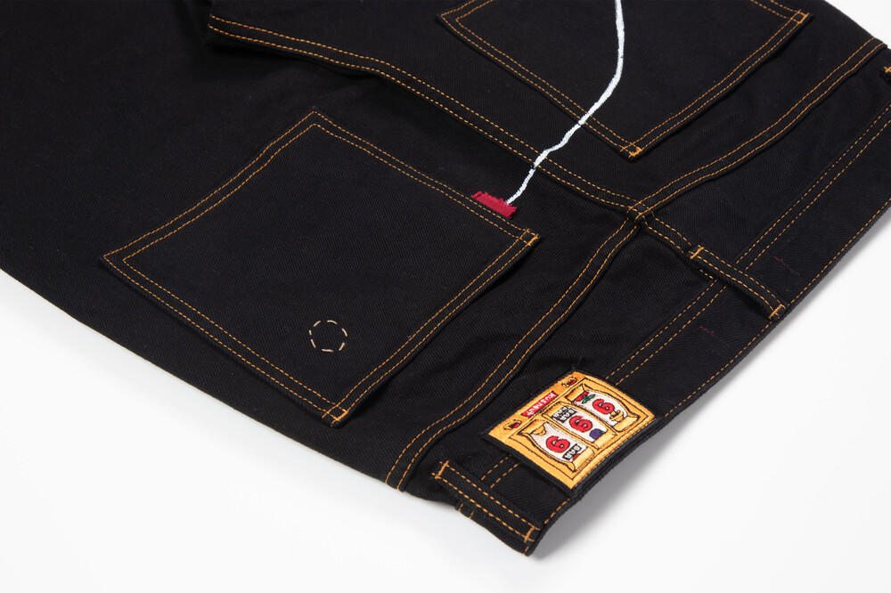 -밀도높고 두께감 있는 5.5수 원단 사용으로 내구성과 멋스러운 주름 연출.