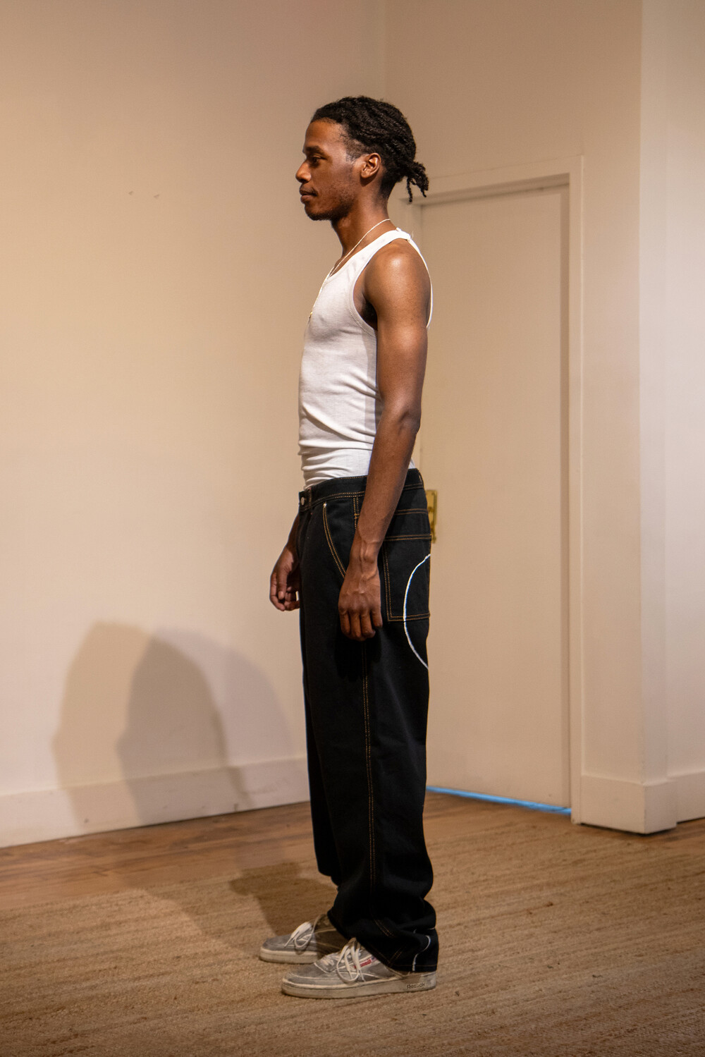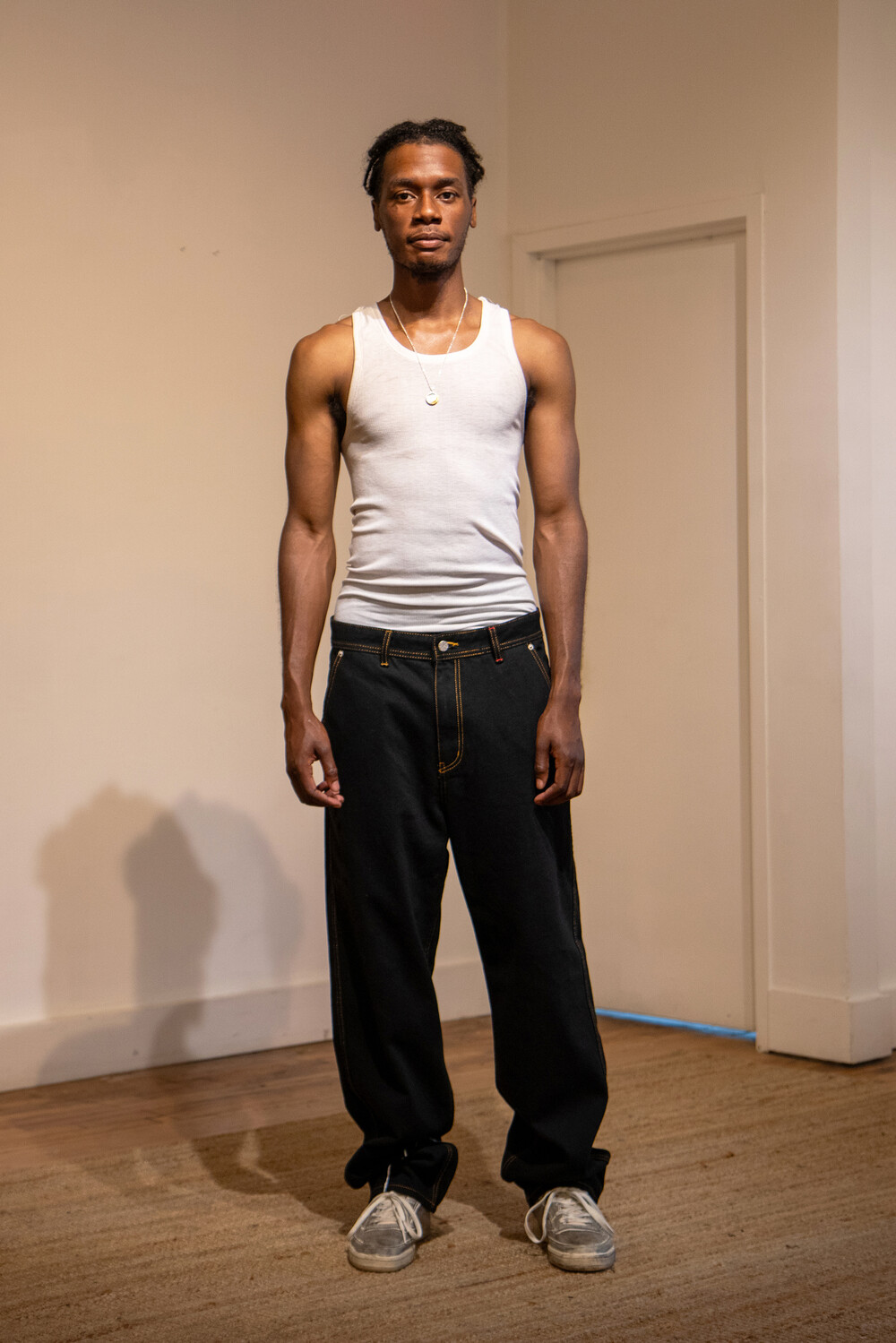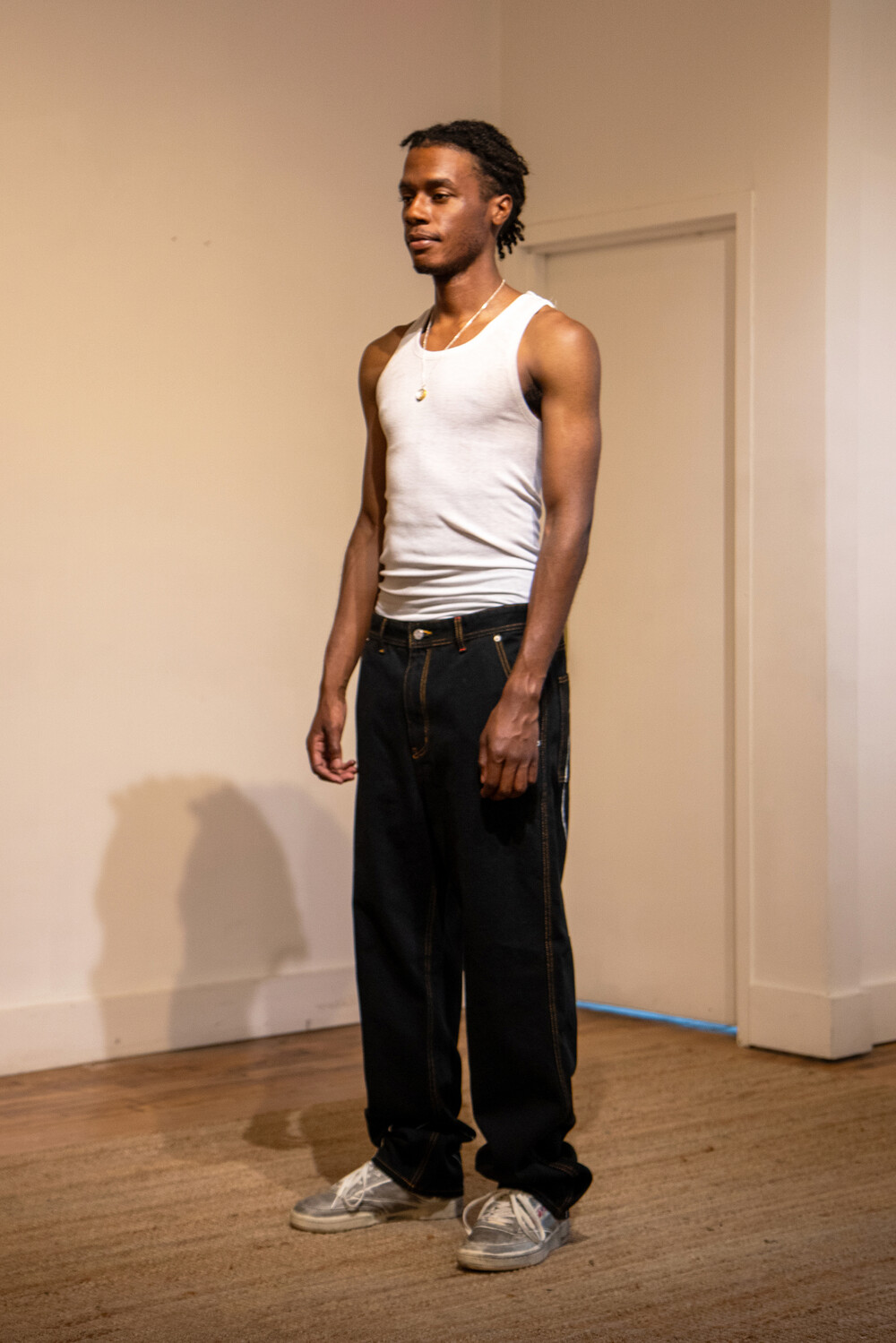 -밀도높고 두께감 있는 5.5수 원단 사용으로 내구성과 멋스러운 주름 연출.