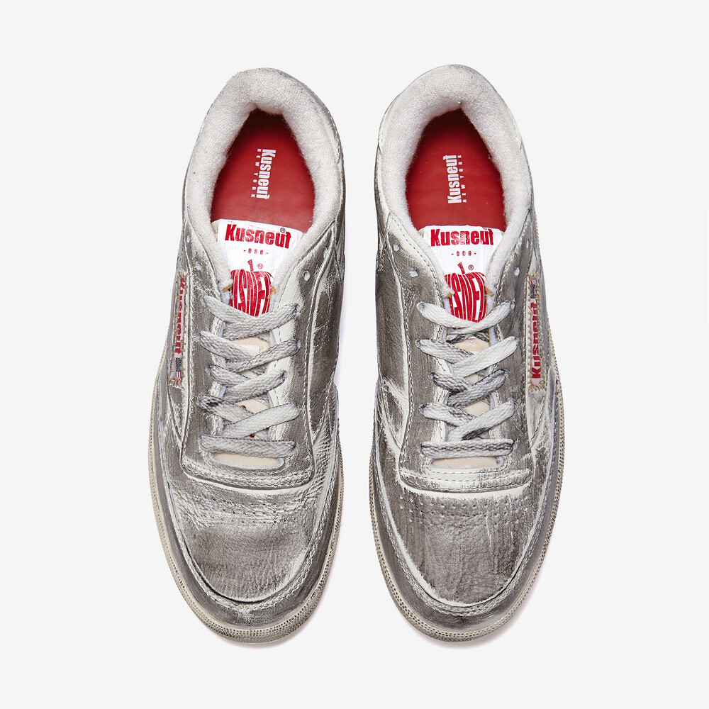 'Club C 85 Canal'는 쿠스너프와 리복이 협업하여 만든 제품으로, 리복을 대표하는 스니커즈 '클럽 C 85 빈티지'를 베이스에 쿠스너프의 가공방식(다잉,핸드페인팅,핸드스티치 등)을 더하여 완성된 제품입니다.