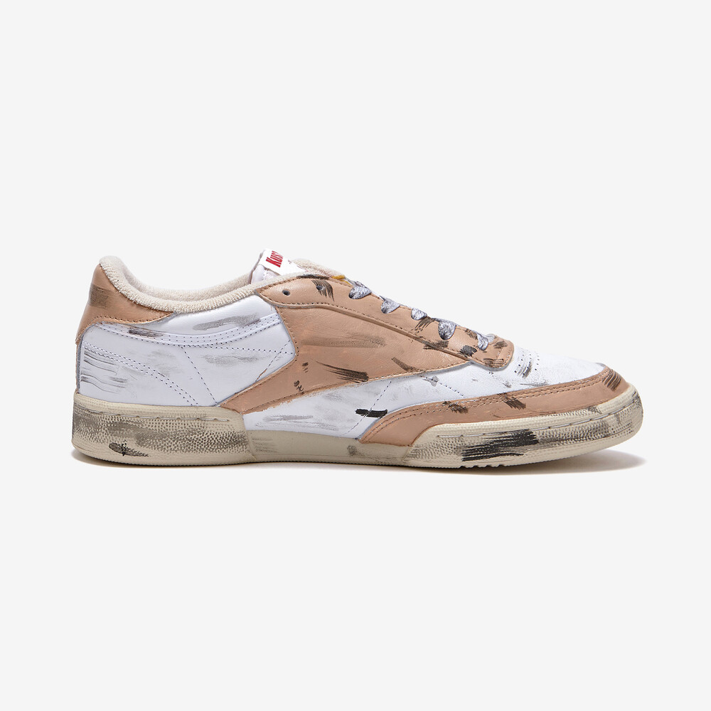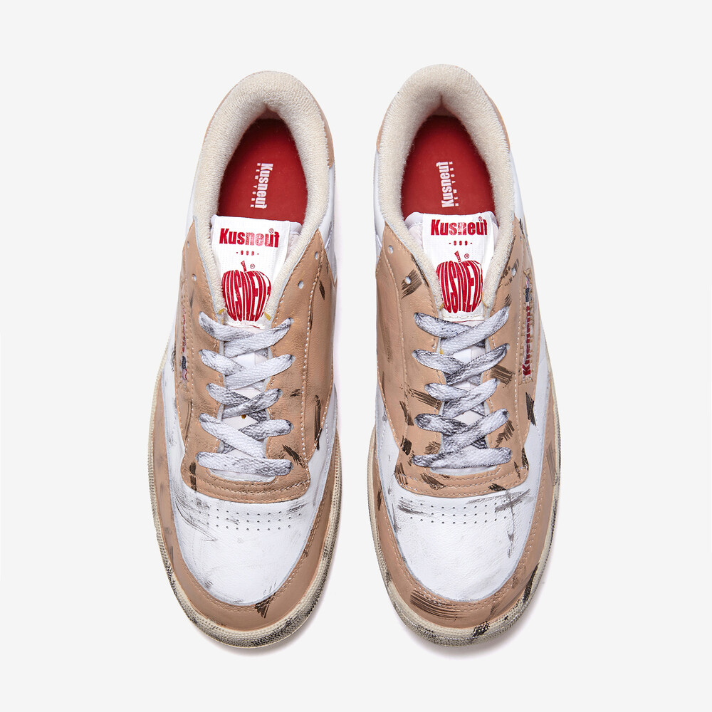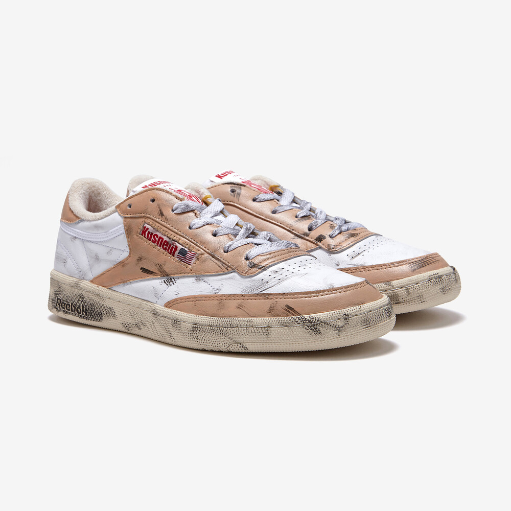'Club C 85 Bleecker'는 쿠스너프와 리복이 협업하여 만든 제품으로, 리복을 대표하는 스니커즈 '클럽 C 85 빈티지'를 베이스에 쿠스너프의 가공방식(다잉,핸드페인팅,핸드스티치 등)을 더하여 완성된 제품입니다.