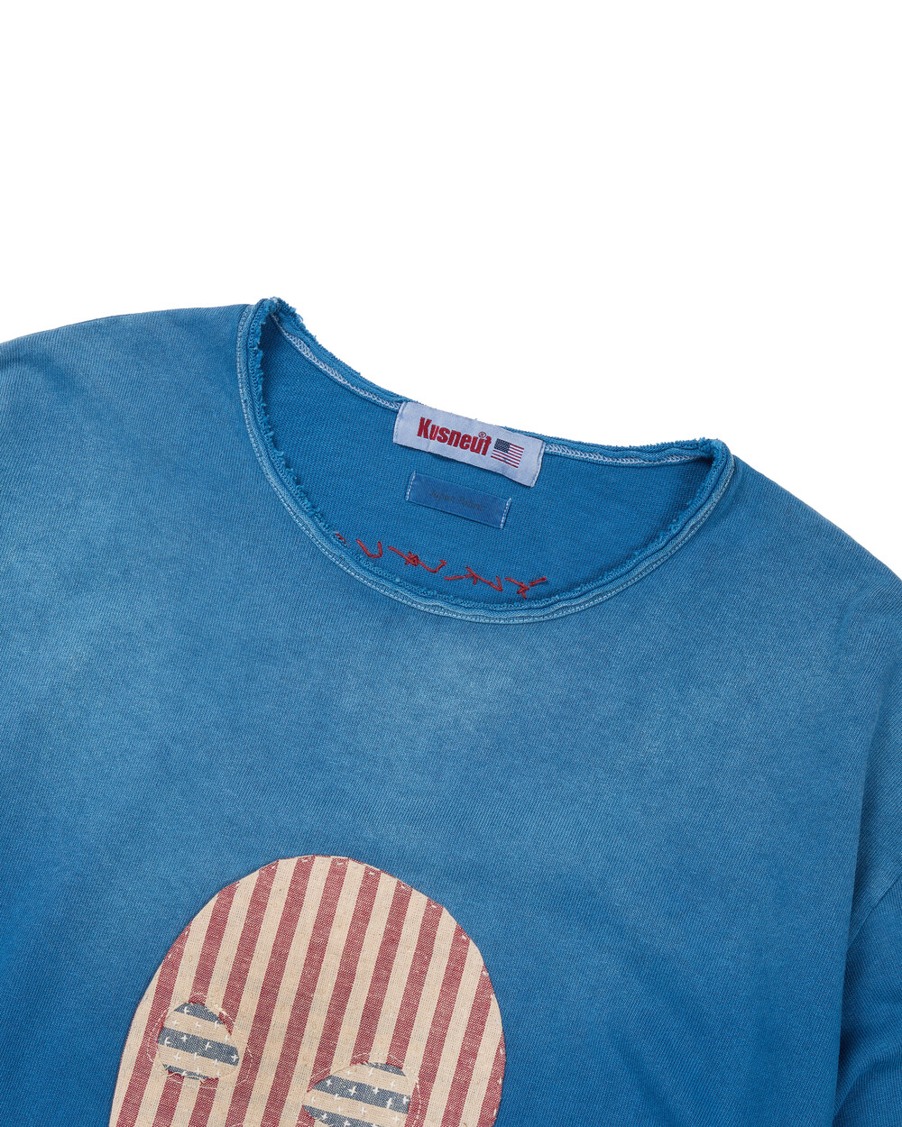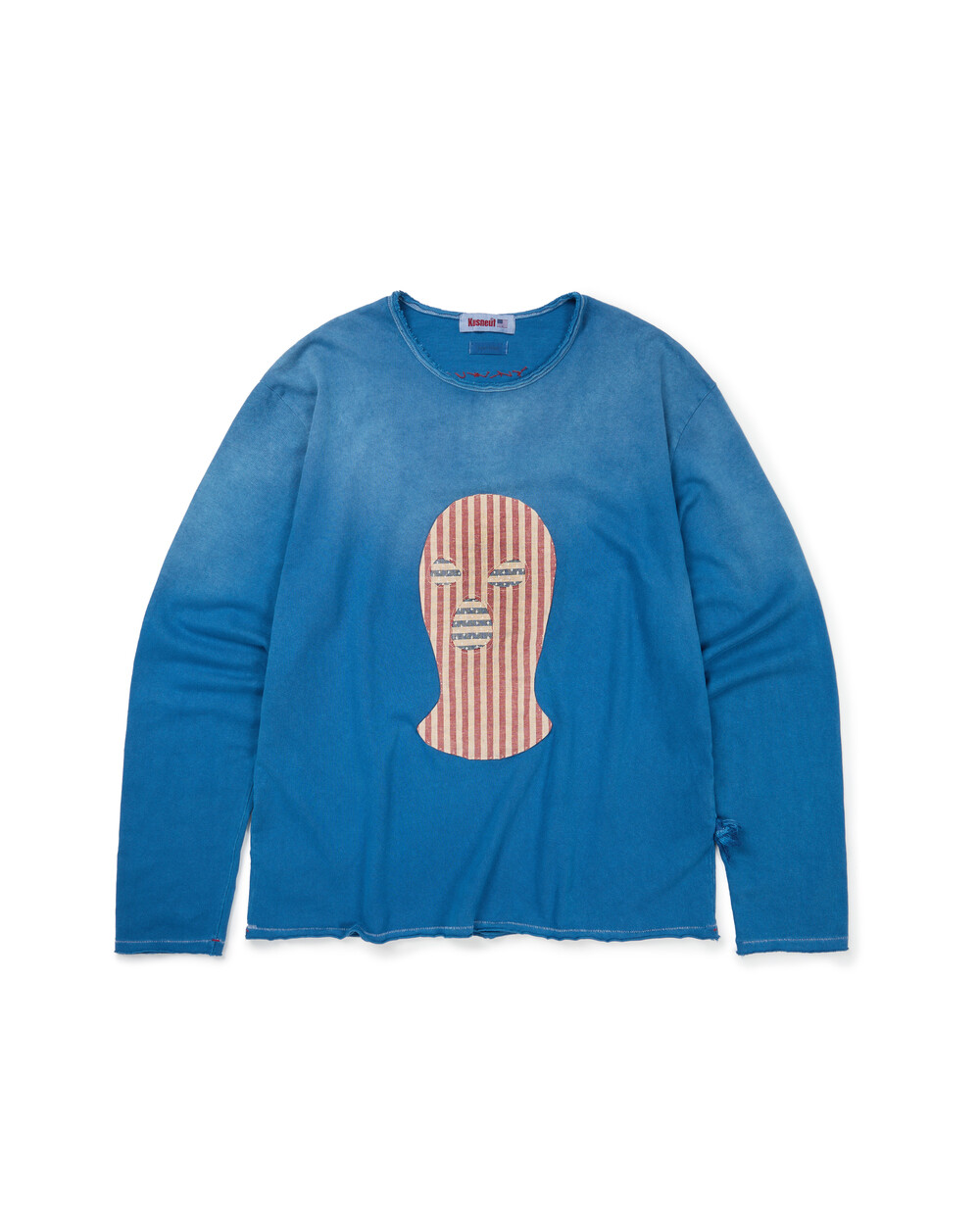 USA Flag Balaclava Patchwork LS tee [Indigo dye]