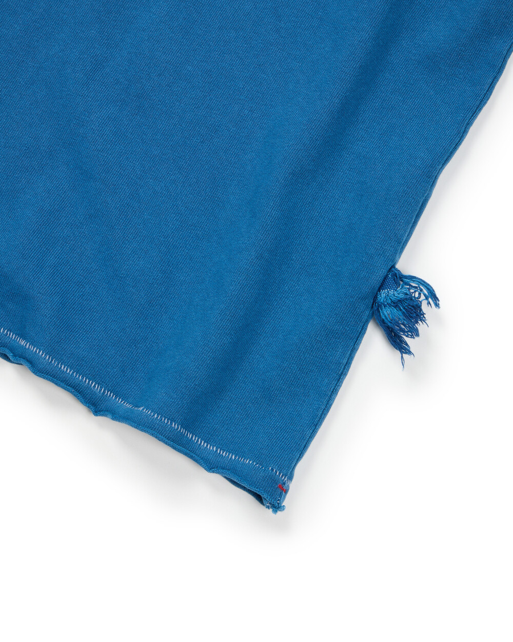 - 소매와 밑단 러프한 마감 처리.