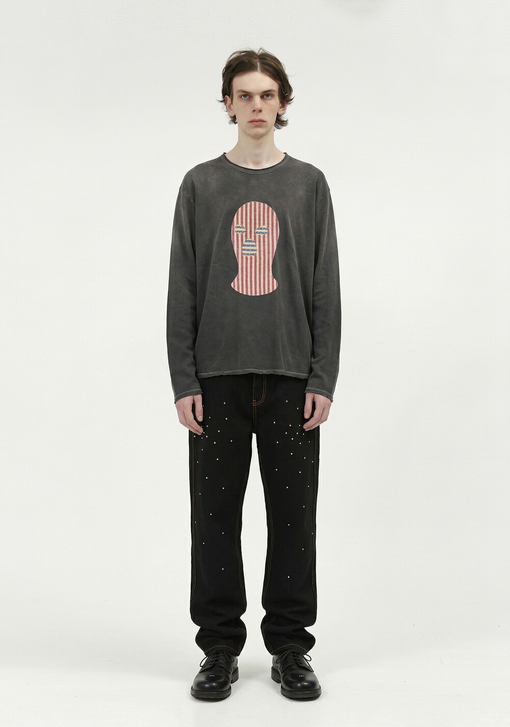 USA Flag Balaclava Patchwork LS tee [Charcoal dye]